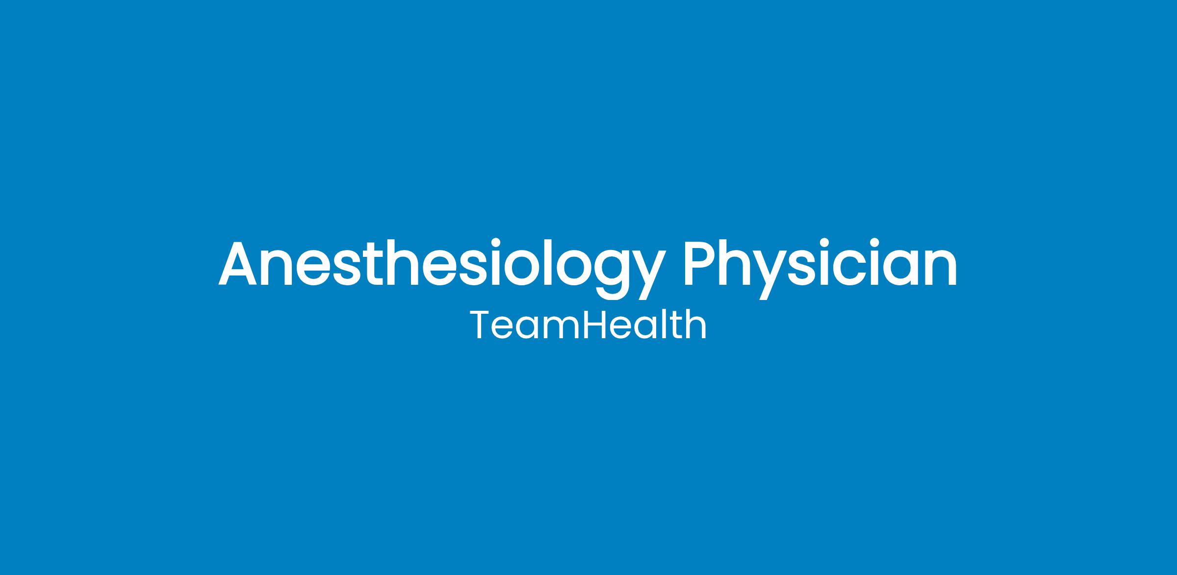 Apply today and see why TeamHealth is a national leader in anesthesia care!