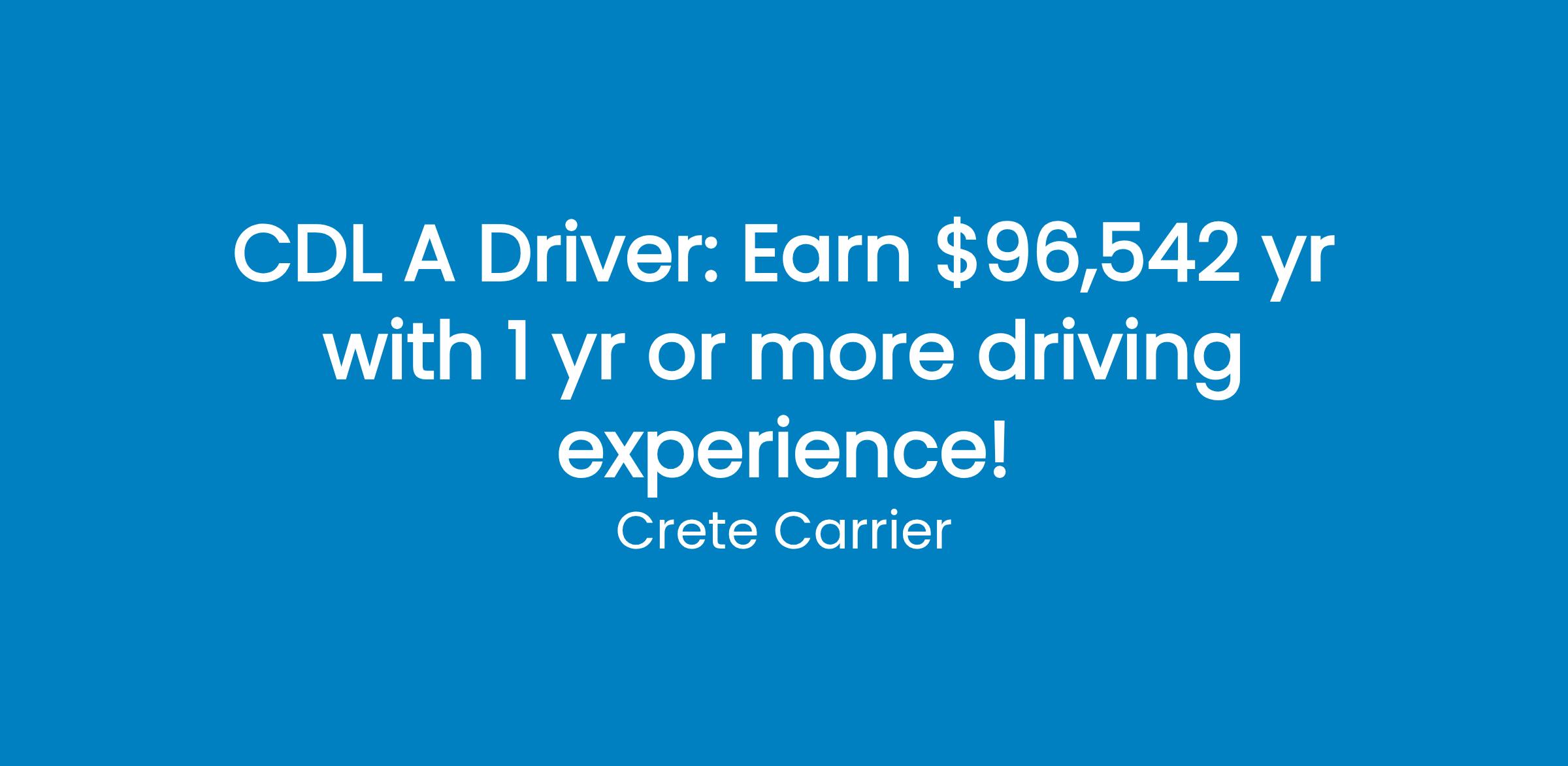 CDL A Driver: Earn $96,542 yr with 1 yr or more driving experience!