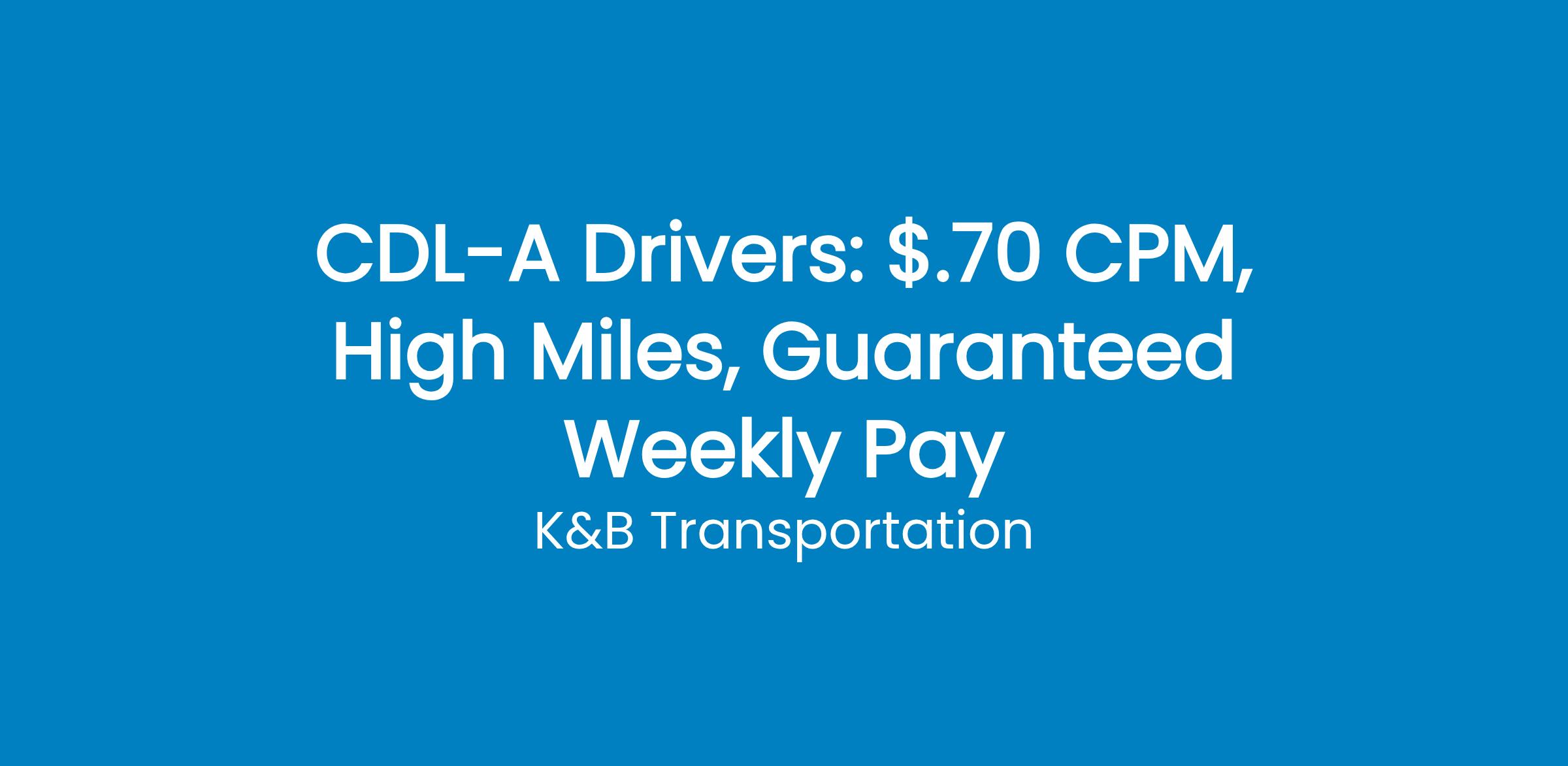 Are you a Road Warrior? K&B Transportation is hiring for our Road Warrior fleet. Drivers on this option go out for 2 months at a time and then go home for ten days! Our Road Warrior drivers are guaranteed $1610 per week minimum, taking the worries out of your paycheck! Enjoy a 70 CPM starting wage! With our top miles and full accessory pay your guarantee is just a minimum! You can earn $2000 on top weeks with this leading pay package!