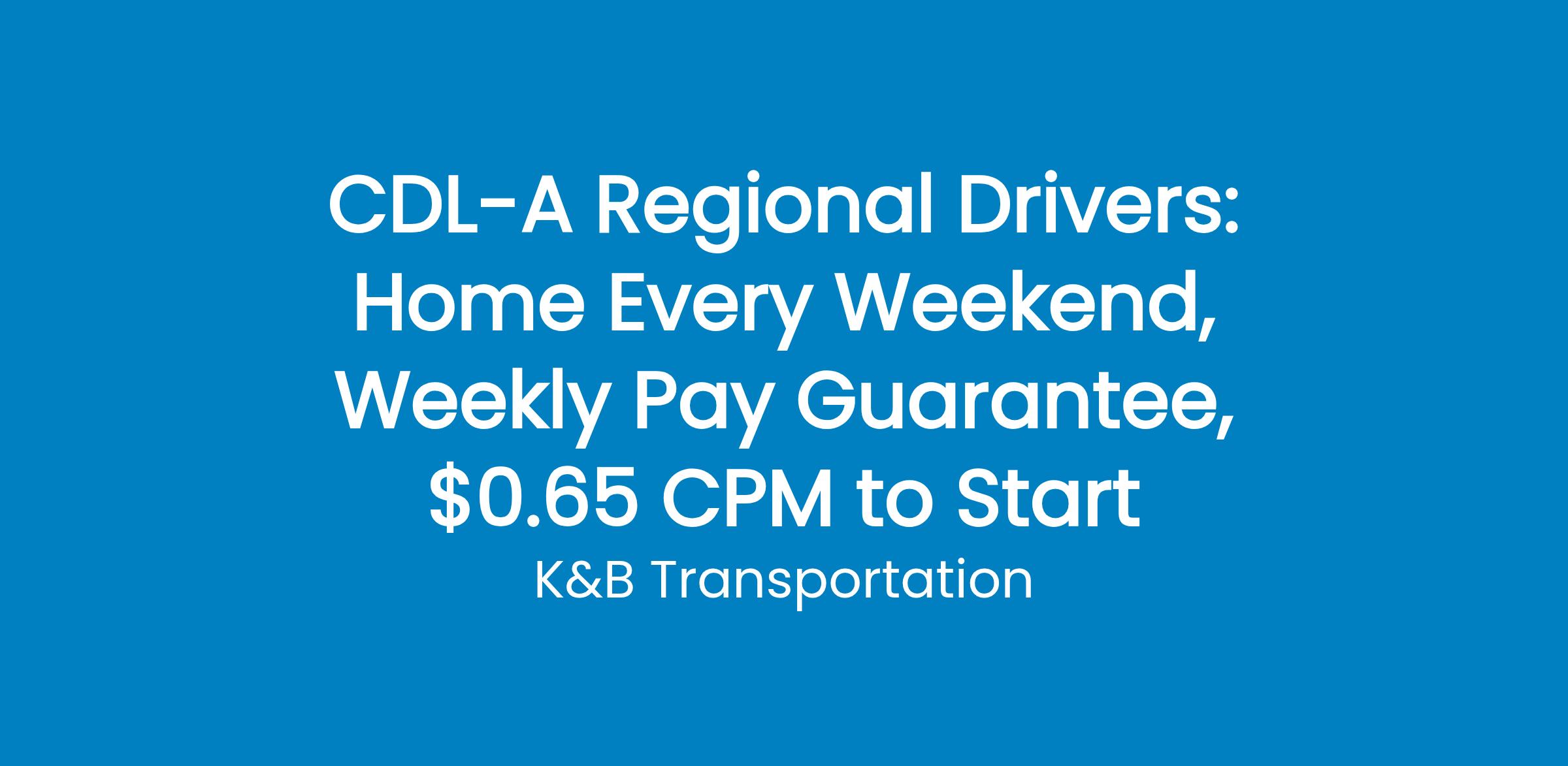 CDL-A Regional Drivers: Home Every Weekend, Weekly Pay Guarantee, $0.65 CPM to Start