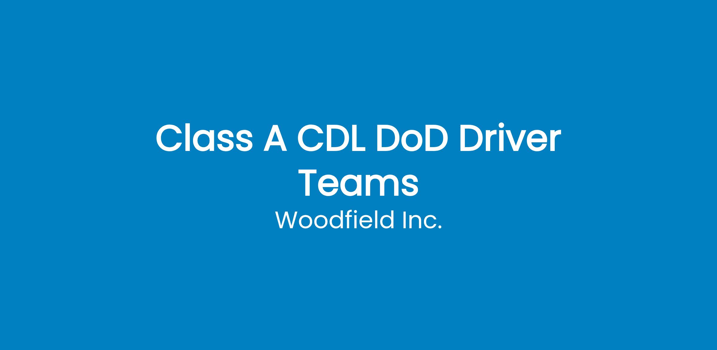 Description: Woodfield, based out of Camden, AR, is hiring for Class A OTR Team Drivers with Security Clearance