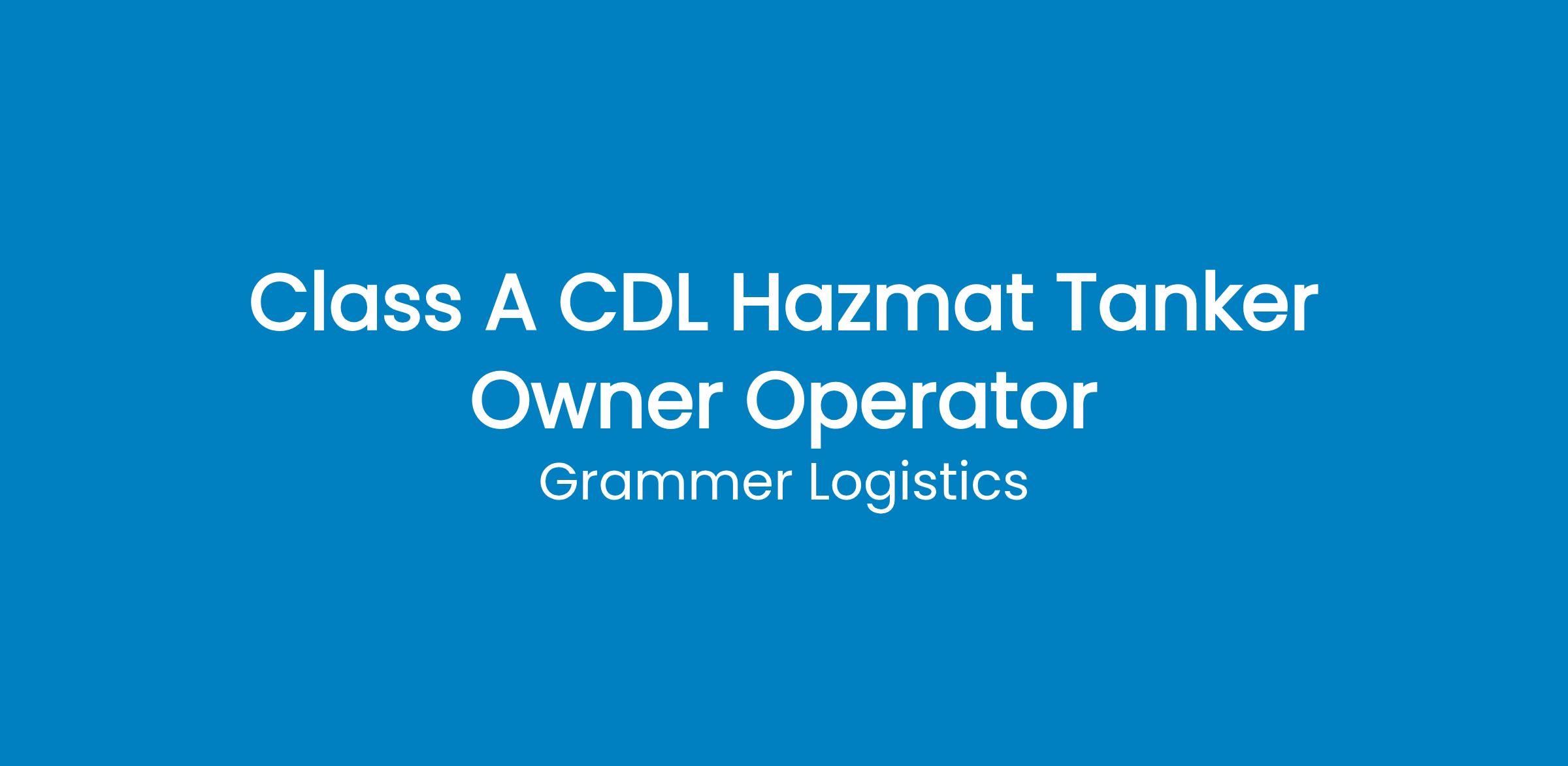 Class A CDL Hazmat Tanker Owner Operator