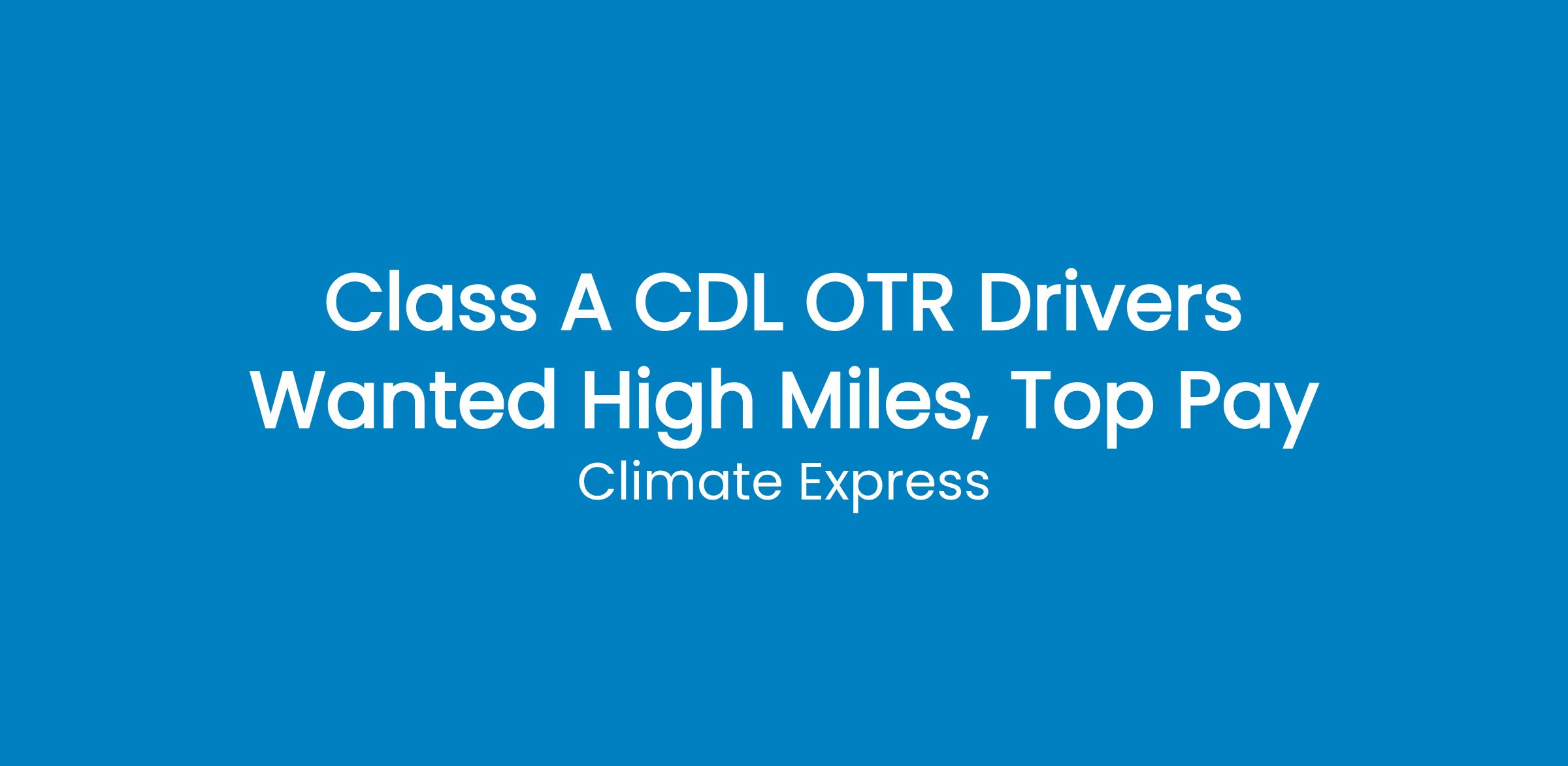 Call today or Apply Online Below Job Description: Class A CDL OTR Drivers Wanted High Miles, Top Pay Top Pay New Equipment Consistent Freight Join a stable Midwest based carrier with
