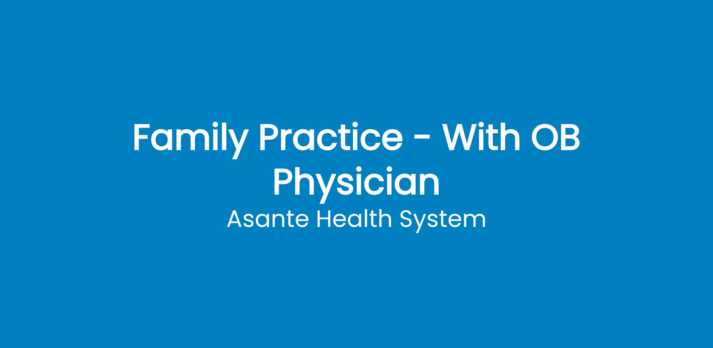 The Asante Difference:At Asante, we re committed to creating an environment where healthcare professionals can thrive personally and professionally. Our physicians enjoy working in a supportive, innovative culture focused on delivering the highest quality of care to our patients.