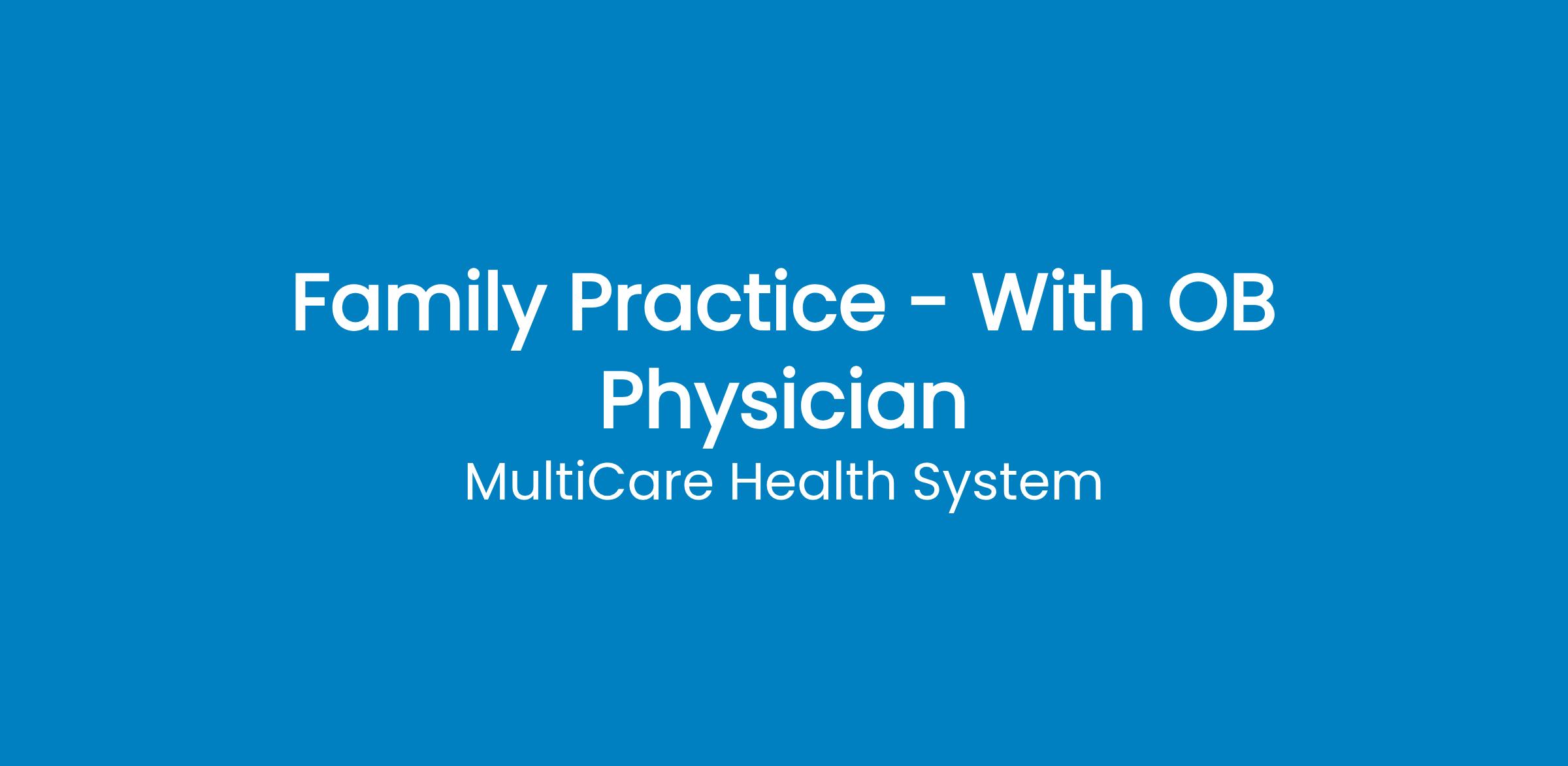 You Belong Here.At MultiCare, we strive to offer a true sense of belonging for all our employees. Across our health care network, you will find a dynamic range of meaningful careers, opportunities for growth, safe workplaces, and flexible schedules. We are connected by our mission - partnering and healing for a healthy future - and dedicated to the health and well-being of the communities we serve.FTE: 1.0 Shift: Days, Schedule: Clinic Open M-FAnnual Compensation: $269,735 to $298,514What We Have to OfferCompetitive compensation package with potential sign-on and relocationMonthly stipend potential for early resident sign-onSubstantial benefits including medical, dental, annual leave, CME, retirement, and malpractice insurance (including tail)Generous time off to support work/life balanceCareer growth options with student loan repayment and leadership opportunitiesResearch opportunities with the MultiCare Institute for Research & InnovationWellness program including dedicated mental health services and leadership and wellness coaching24/7 nurse triage service with limited on-call requirementsSupport of 300+ provider multi-specialty groupDedicated medical assistant per physicianEpic EMR and AI assistance to support efficiencyEnjoy life in the Pacific Northwest with breathtaking water, mountain, and forest views at every turnFor more information, contact Grace Hansmeier at SummaryMultiCare Health System is seeking a Family Medicine physician with OB to join our busy, well-established and expanding practice. We offer Primary Care with OB, with embedded support services to make practice sustainable and enjoyable. These elements include behavioral health resources, integrated RN Care Managers, medication refill support, well-resourced front and back-office staff services, and a robust clinical quality program.Providers at MultiCare are recognized as being among the best in the Northwest Region. Here, you'll find everything you need to excel in your job including outstanding facilities, comprehensive resources and talented teammates in partnering for healing and a healthy future.RequirementsBoard certified/eligible at time of employmentLicensed in the state of WA by the time of employmentDEA, NPI & prescriptive authorityCurrent BLS for Healthcare Providers certification by the American Heart AssociationWhy MultiCare? Rooted in the local community - Partnering with patients, families and neighbors across the Pacific Northwest for more than 140 years Growth and education - Competitive tuition assistance, award-winning residencies, fellowships and career development to invest in your future Well-being and support - Generous PTO, Code Lavender and Employee Assistance Programs to help you maintain balance and feel cared for at work and in life Living our values - Respect, integrity, kindness and collaboration guide how we care for patients, communities and each other Belonging for all - Employee Resource Groups, inclusion initiatives and outreach programs support a workplace where every voice is valued Pacific Northwest lifestyle - Work and live where natural beauty, adventure and strong community connections are part of everyday life Pay and Benefit ExpectationsWe provide a comprehensive benefits package, including competitive salary, medical, dental and retirement benefits and paid time off. As required by various pay transparency laws, we share a competitive range of compensation for candidates hired into each position. The pay scale is $304,000.00 - $320,000.00 USD. However, pay is influenced by factors specific to applicants, including but not limited to: skill set, level of experience, and certification(s) and/or education. If this position is associated with a union contract, pay will be reflective of the appropriate step on the pay scale to which the applicant's years of experience align.Associated benefit information can be viewed here.
