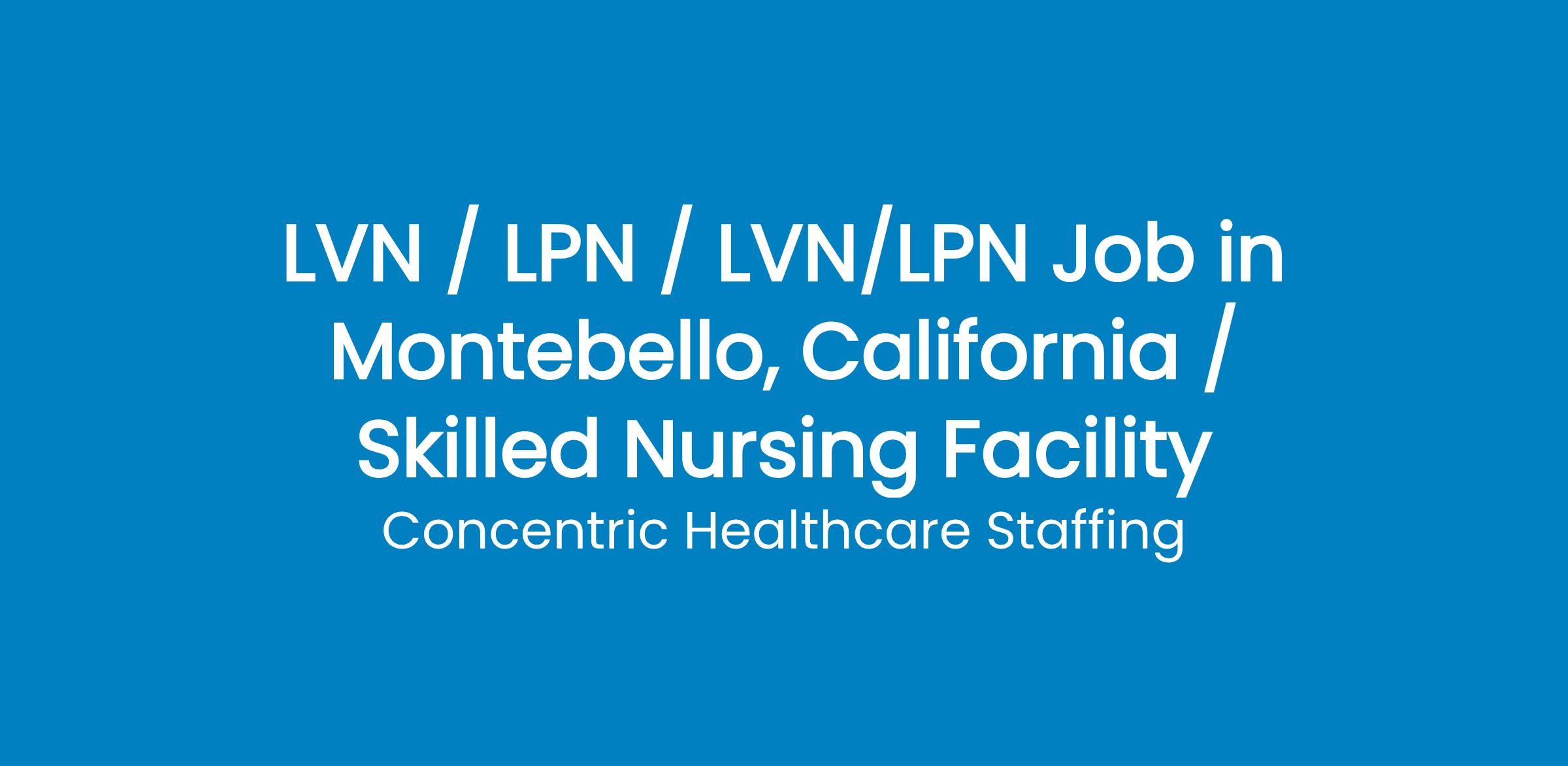 URGENT HIRING FOR LICENSED VOCATIONAL NURSE IN MONTEBELLO, CA AREA!