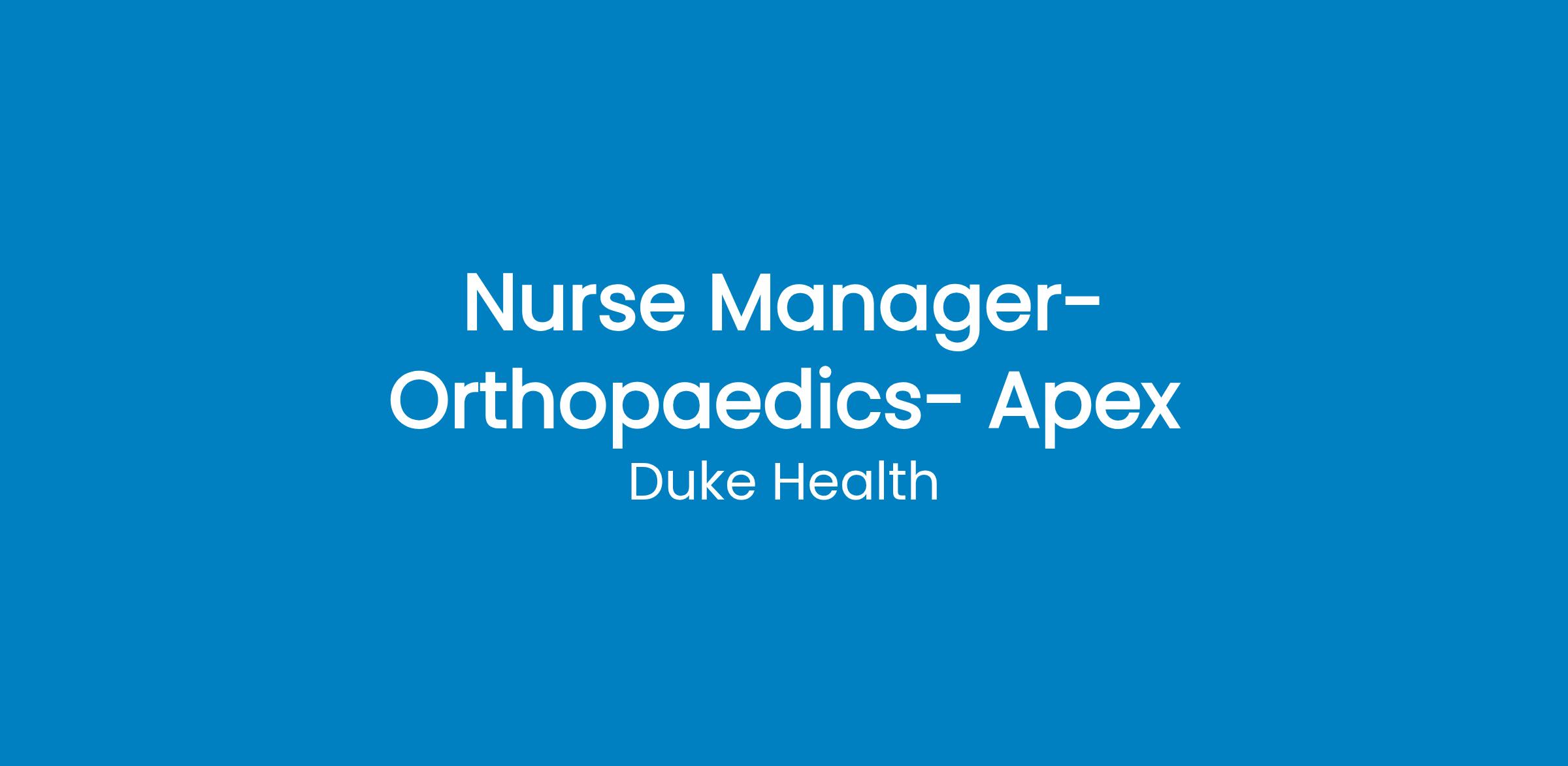 Nurse Manager- Duke Orthopaedics Apex