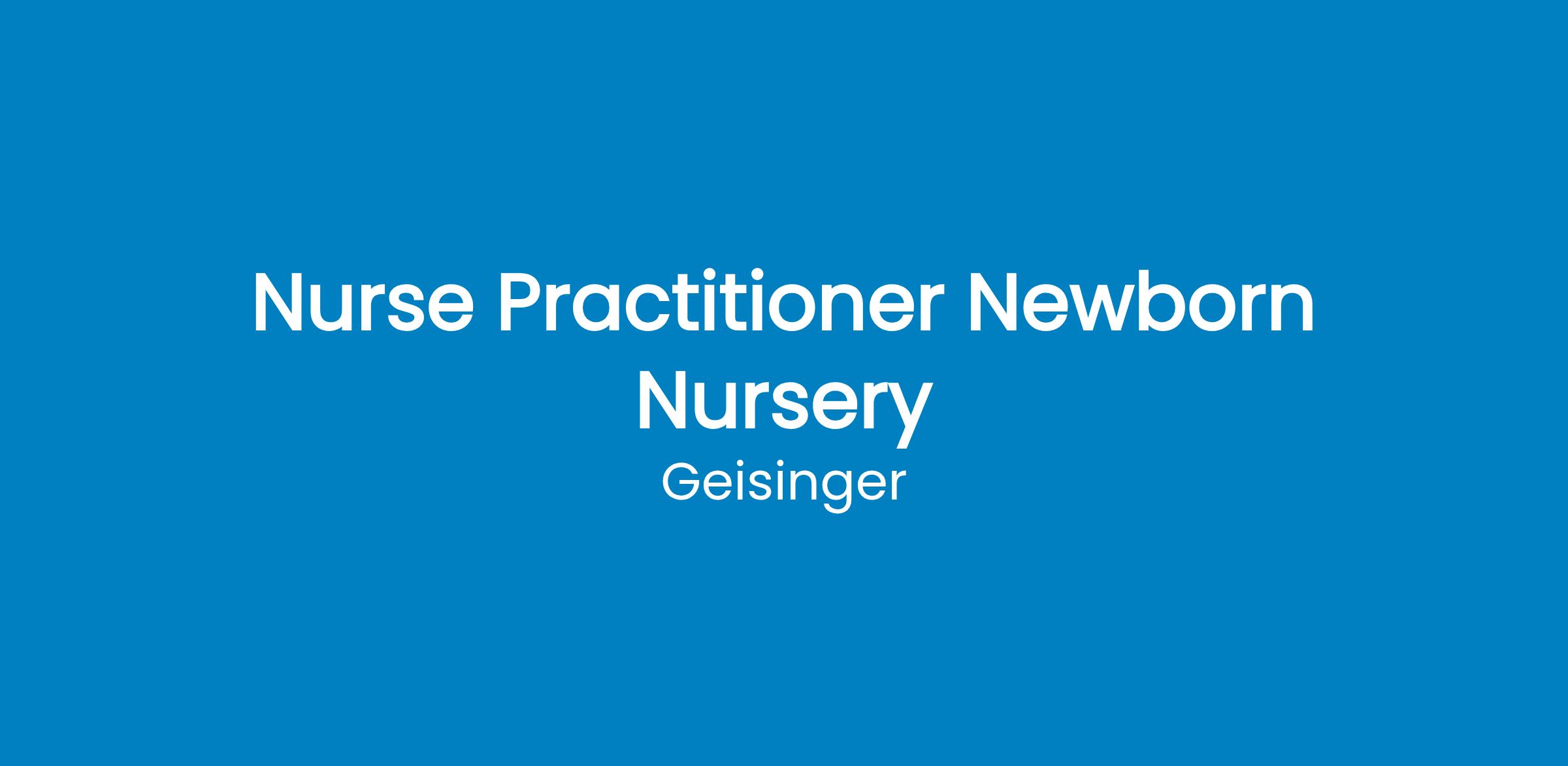 Job SummaryGeisinger is seeking a Nurse Practitioner to provide Newborn Nursery coverage at Geisinger Lewistown Hospital. Experience in newborn nursery inpatient management preferred but willing to train those without experience.