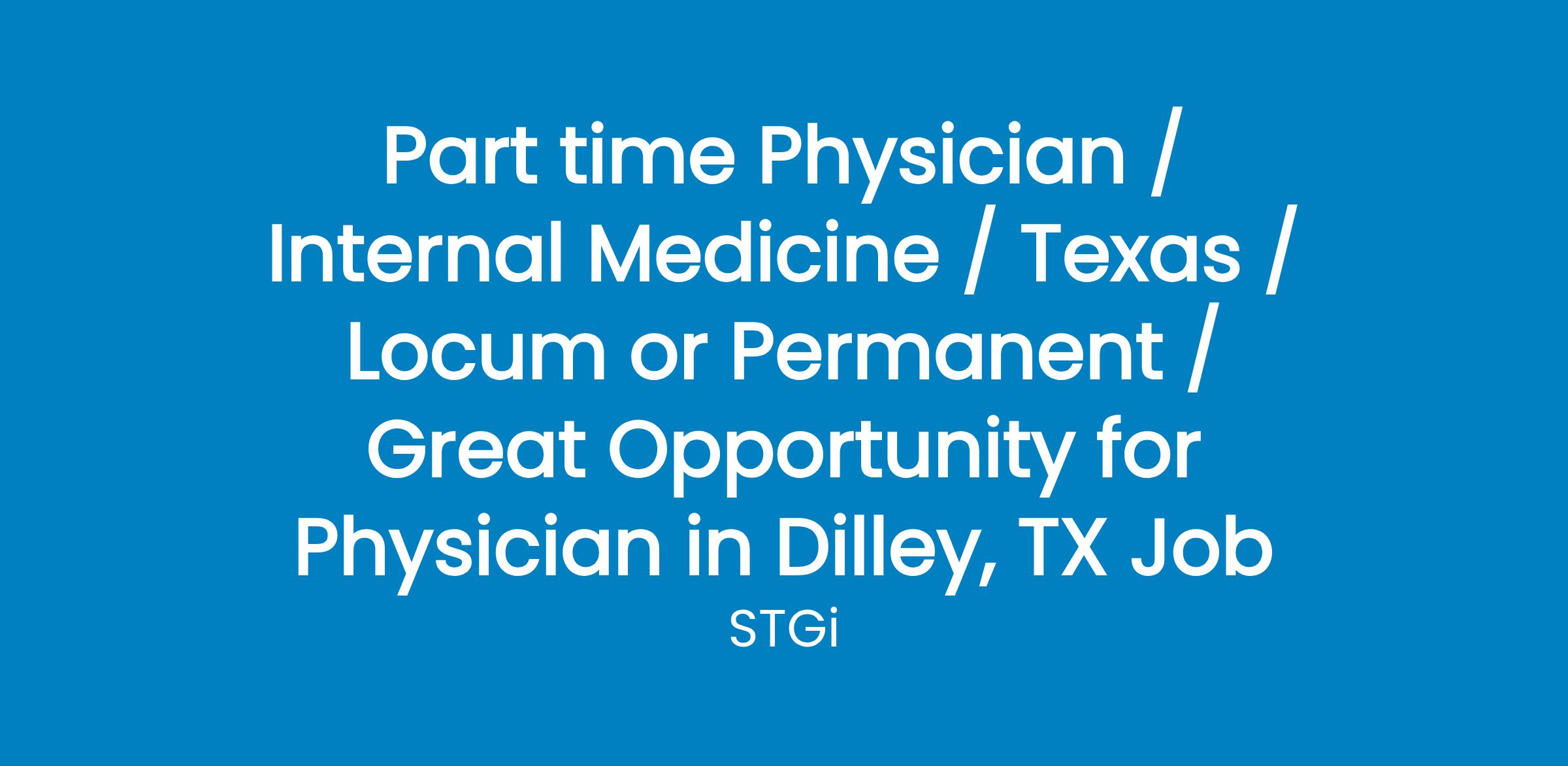 Are you ready for the experience of a lifetime? Are you tired of the rat race of private practice? Be well compensated with flexible hours AND make a difference in an underserved population. This part time physician position is for an FP or IM trained physician. Work 20 hrs/week with the possiblity of two 10hr shifts per week. It offers the opportunity to treat patients from all over the world and to see things you will never see in private practice. You will learn about different cultures, languages and diseases while treating an underserved population of detainees at an IHSC facility. The work pace is great and the difference you can make is REAL. Minimum Requirements: Permanent, full, and unrestricted license to practice medicine in TX. Board certified in Internal Medicine or Family Medicine by the American Board of Medical Specialists (ABMS) or American Osteopathic Association (AOA) approved board. Maintains BLS for Healthcare Providers certification through the American Heart Association. Minimum of one year experience as a practicing physician. Must be a US Citizen Must be able to pass a security clearance. Contact Julie Kaplan with STG International if you would like to learn more about this unique opportunity. STGi ext 366