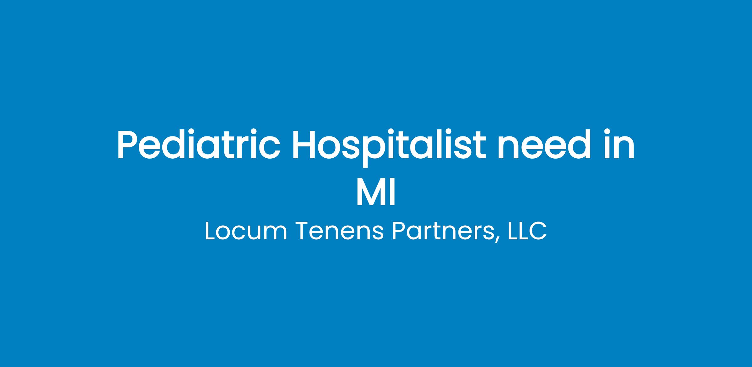 Great MI Pediatric Hospitalist opportunity for Supplemental coverage on the following dates:/27-29/19This is a consistant need with shifts available each month TBD. Shift: 24 hr. call Locum must be able to perform circumcisions. Must attend all C-sections Special care nursery - Level 1 To round on newborns (avg. 2-3), and do circumcisions. Peds avg. 4-5 12 bed Peds. department Surgeons do appendix or trauma. Expenses covered, weekly pay and Occurance Form Malpractice insurance provided. Please call, text or email for more information. Jack Bell x103