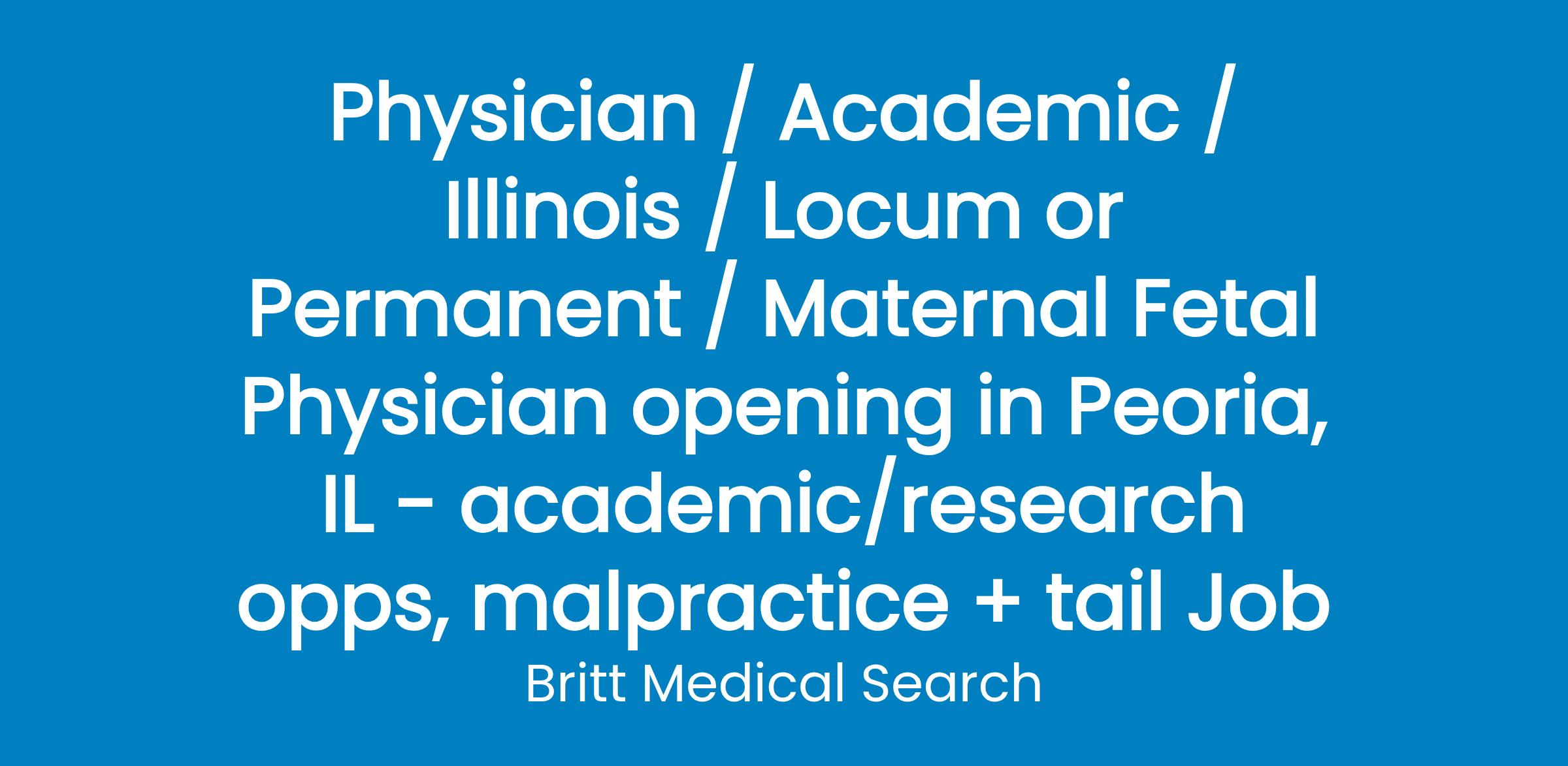Seeking BE/BC Maternal Fetal Medicine Specialist to join growing practice in Peoria, Illinois.