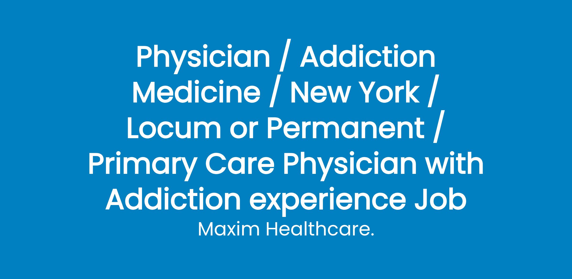 Primary Care Physician with Addiction experience Will perform patient medical exams, coordinate treatment, and review medical history. Conduct physical exams, record findings, and order necessary tests and procedures. Administers treatments and e-prescribes medications and other treatments to treat illnesses and health problems