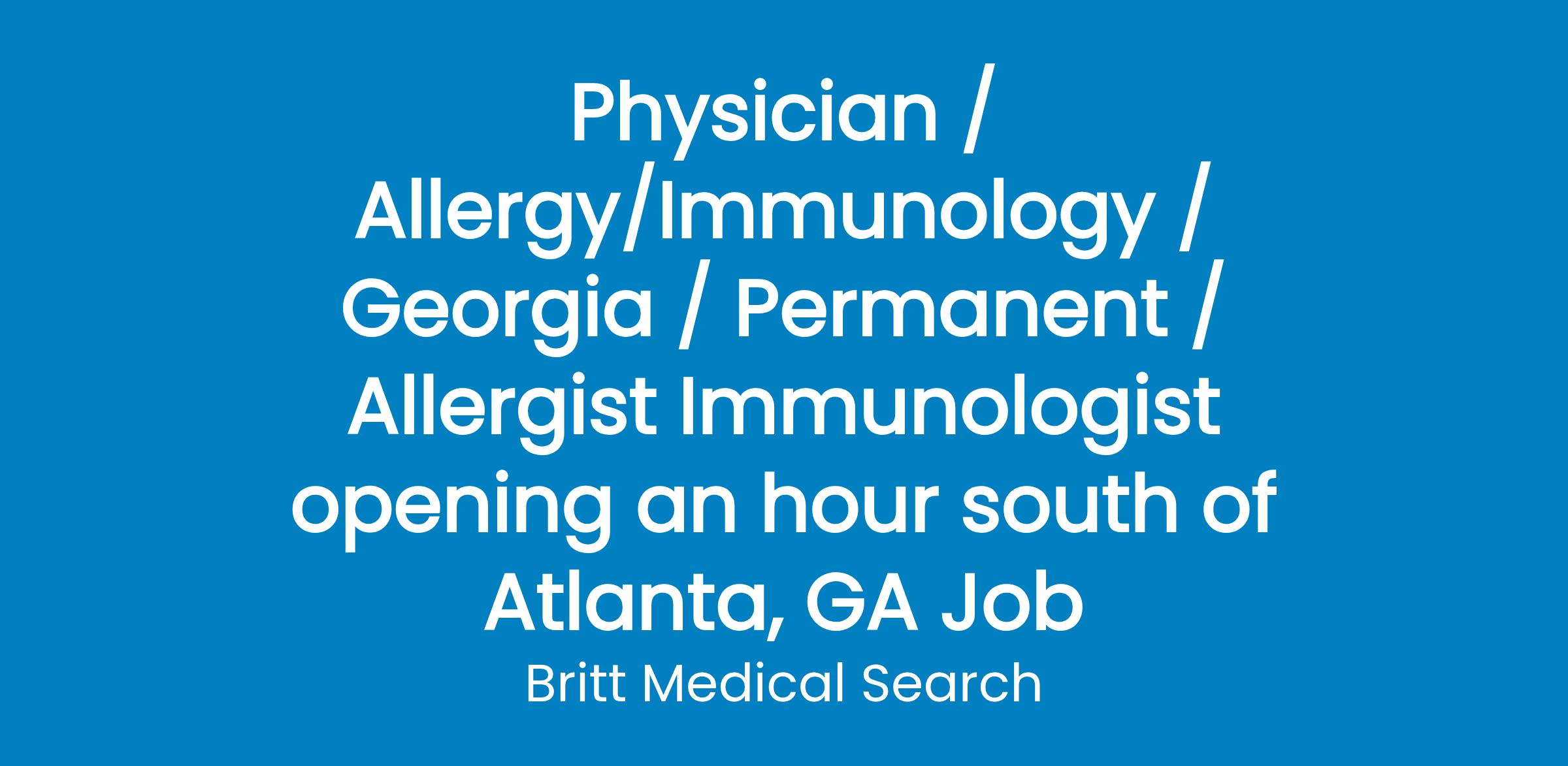 A leading Allergy and Asthma practice south of Atlanta, Georgia, is seeking BE/BC Allergists to join their team in multiple offices across the metro-Atlanta area.
