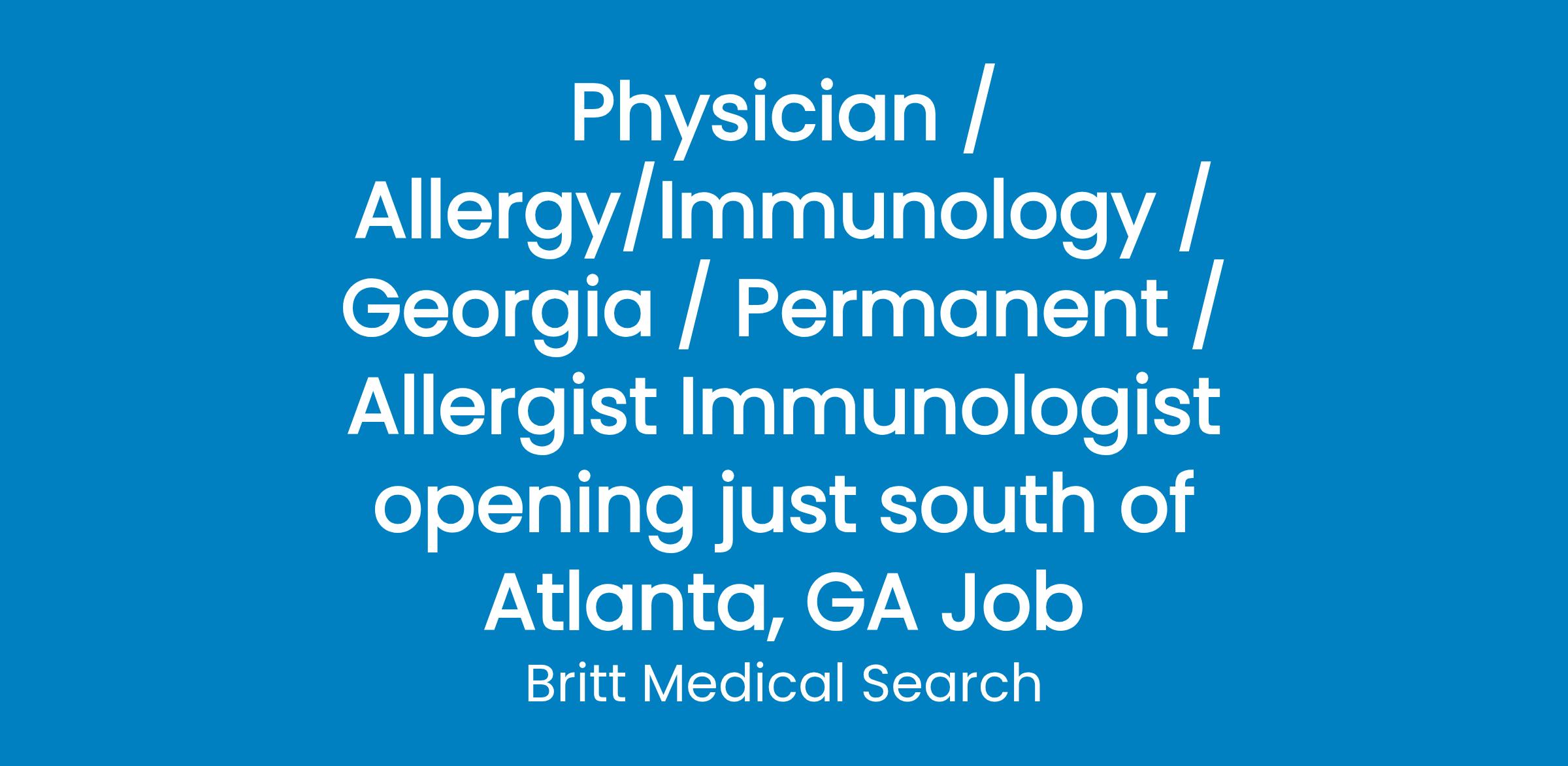 A leading Allergy and Asthma practice is seeking a BE/BC Allergist/Immunologist to join their team in multiple offices across the metro-Atlanta, Georgia area.