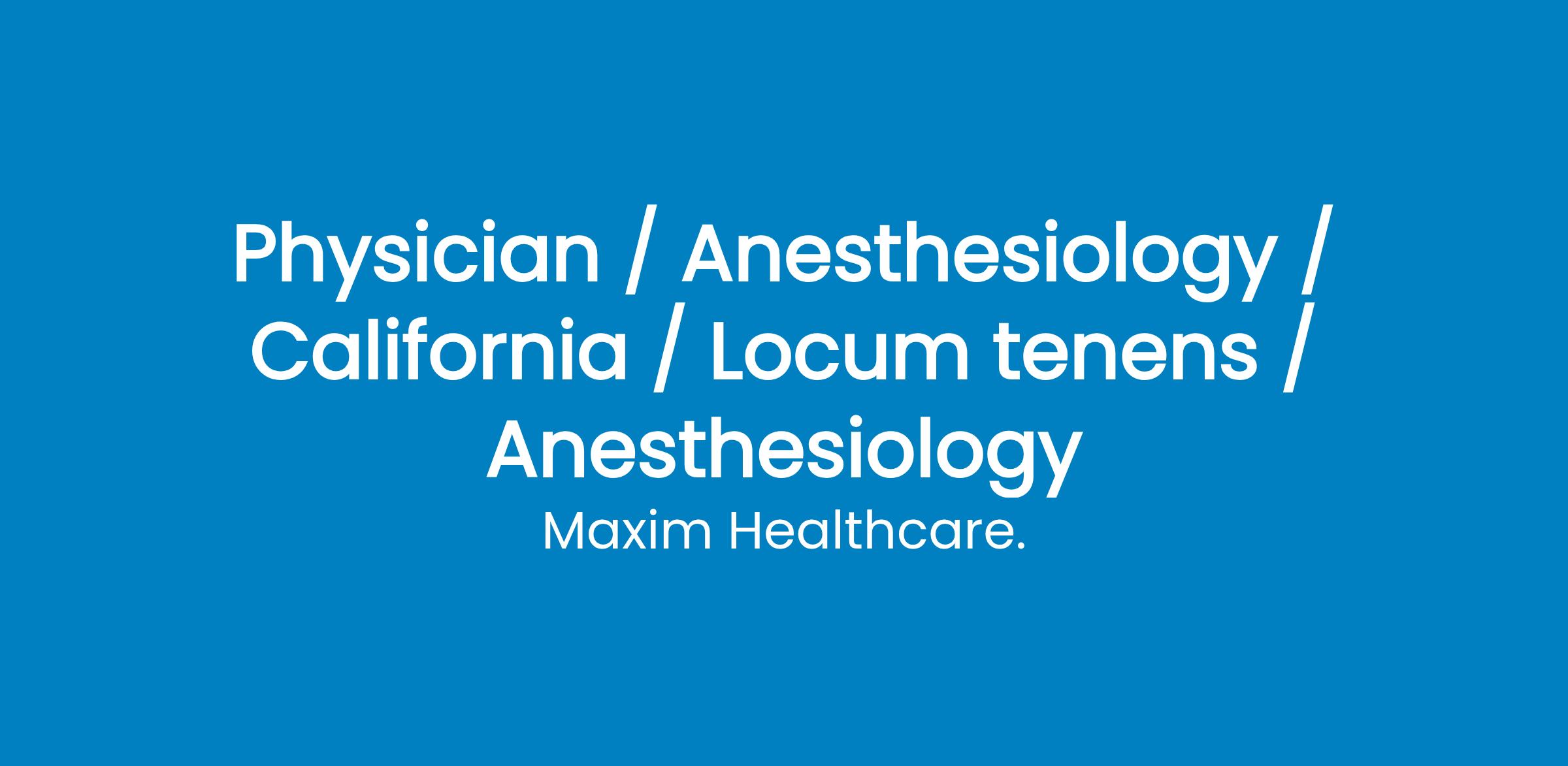 We are seeking a Doctor of Medicine (MD) to work at one of our partner facilities. We're looking for an Anesthesiologist to join our team and help with coverage in California. Coverage is needed ASAP and will be an ongoing need. Please review the details and reply if interested in learning more. Thanks!Location: Northern CaliforniaStart Date: ASAPSchedule: Mon - Fri, 7a - 3pSetting: 100% inpatientBread and butter cases, no heads or heartsBest,Bryan MoyerMaxim