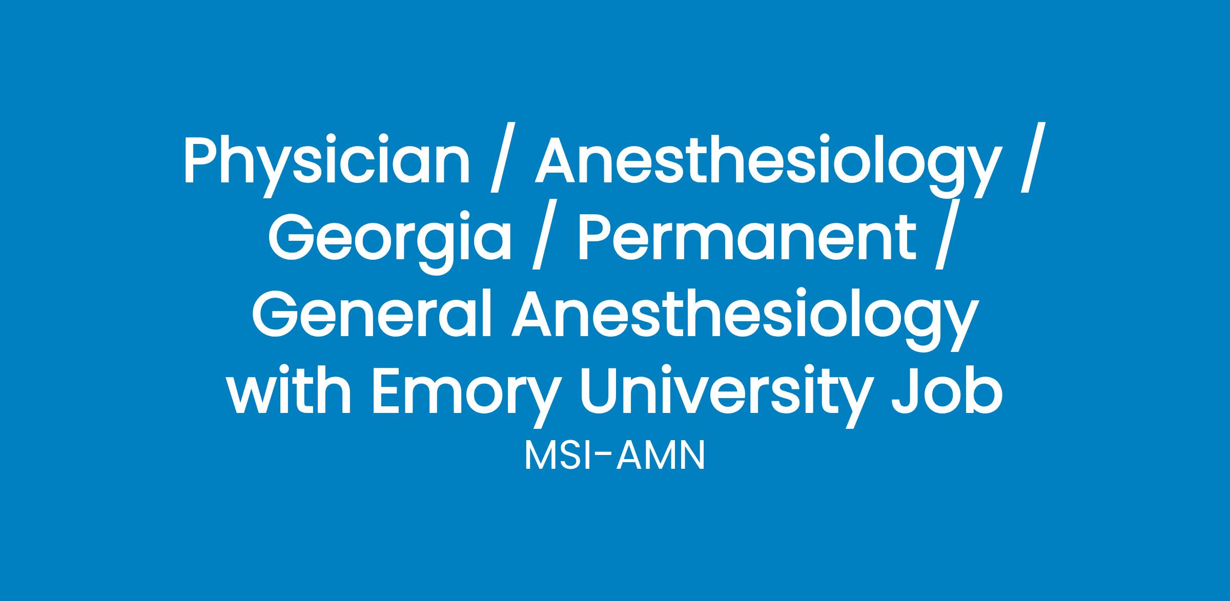 Job Description & RequirementsGeneral Anesthesiology with Emory University
