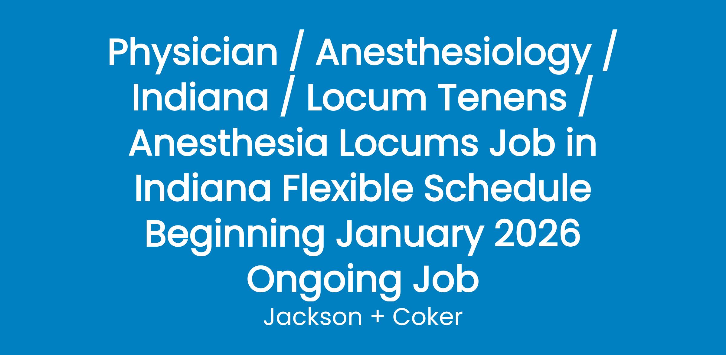 Anesthesia Locums Job in Indiana Flexible Schedule Beginning January 2026 Ongoing Assignment Coverage Details Start as soon as credentialed