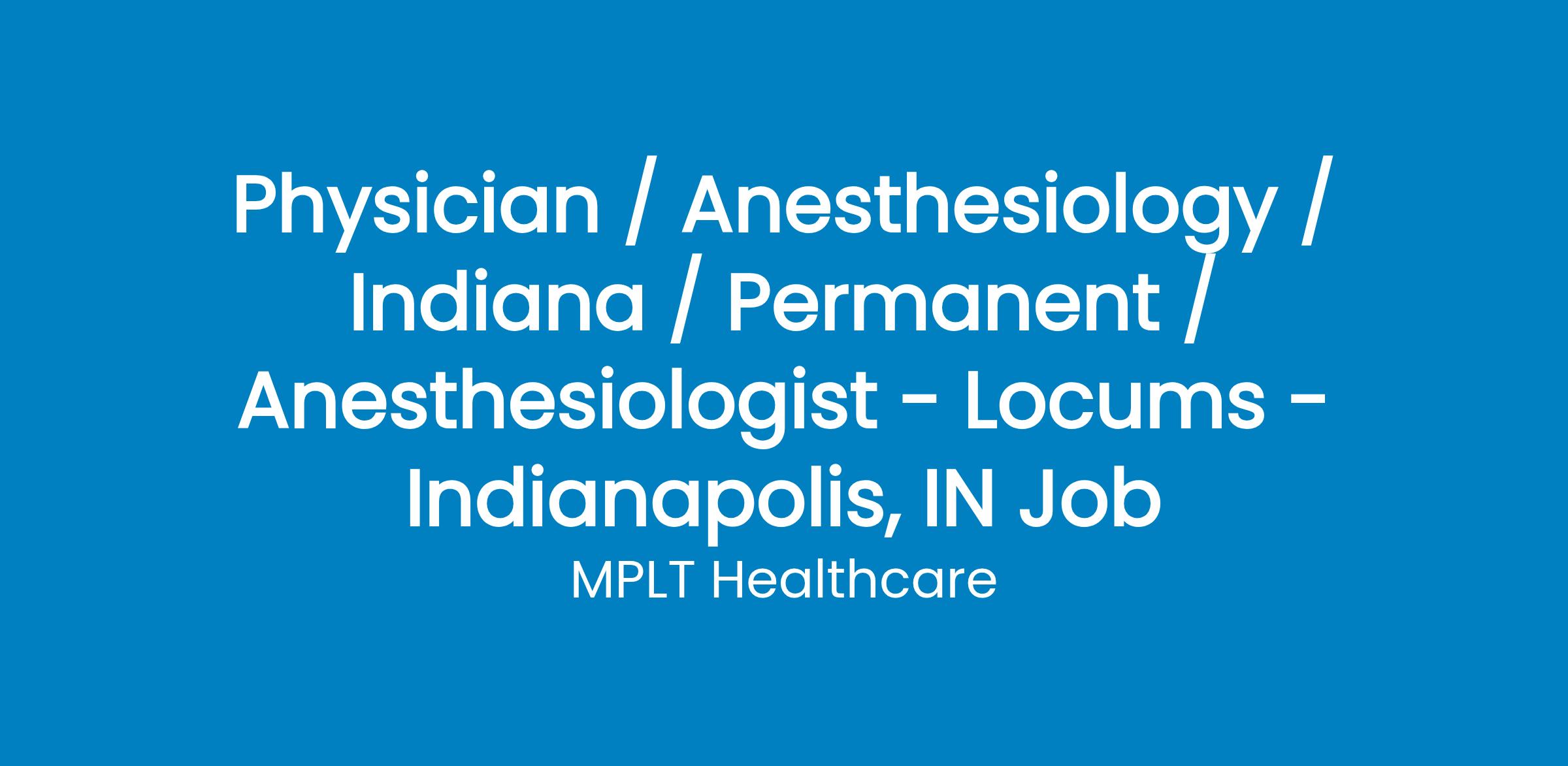 MPLT Healthcare is looking for physicians who Understand the Urgency, Never Give Up, and Have the Courage to Excel in the forever changing medical industry! We have numerous opportunities for an experienced Anesthesiologist with highly competitive pay rates in Indianapolis, IN.