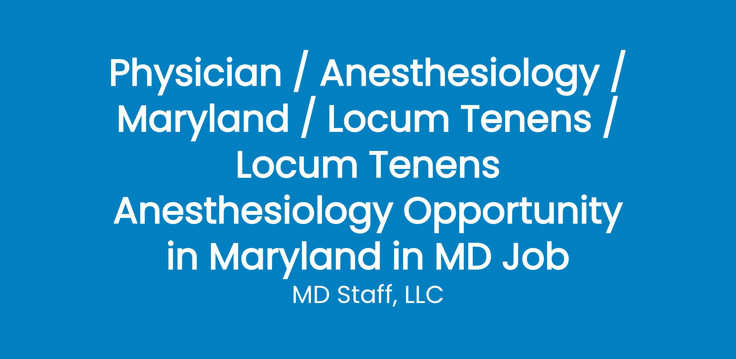 If you're interested in exploring this locum tenens role near Greensboro, MD, apply now using Job ID . Take advantage of this opportunity to provide high-quality anesthesiology care in a collaborative and supportive environment!