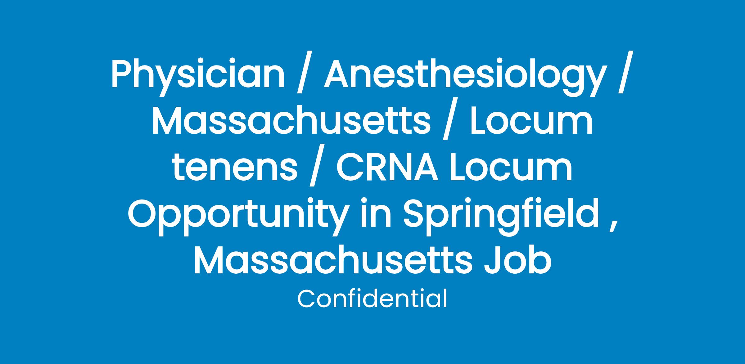 CRNA Needed for Full Time Locums Oppotunity in Springfield, Mass!