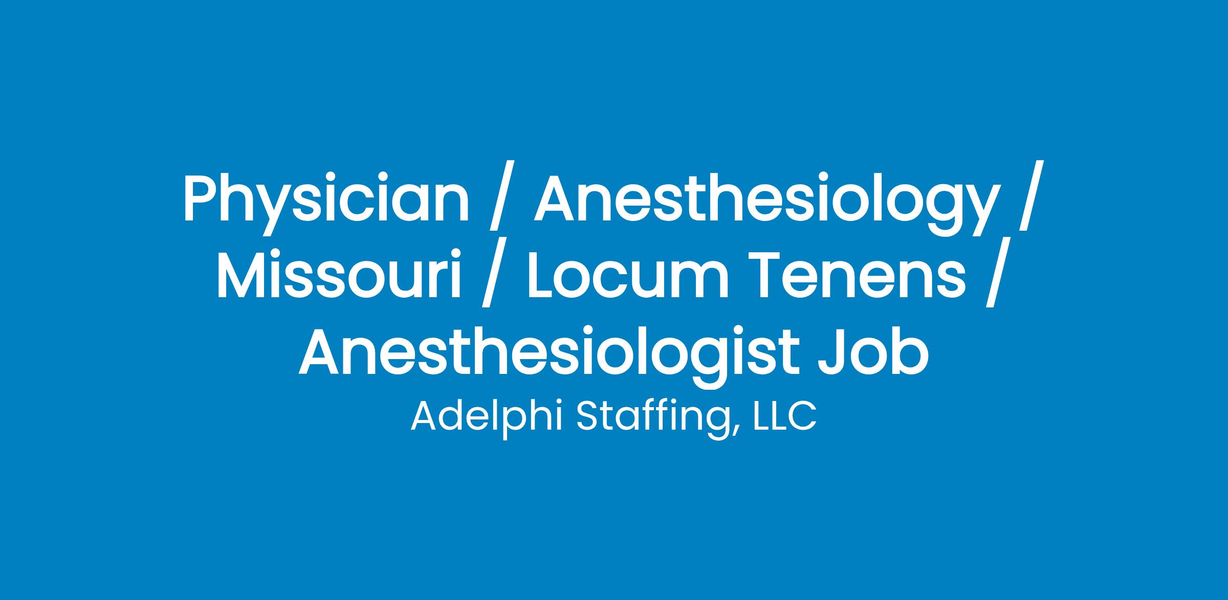 Physician / Anesthesiology / Missouri / Locum Tenens / Anesthesiologist Job
