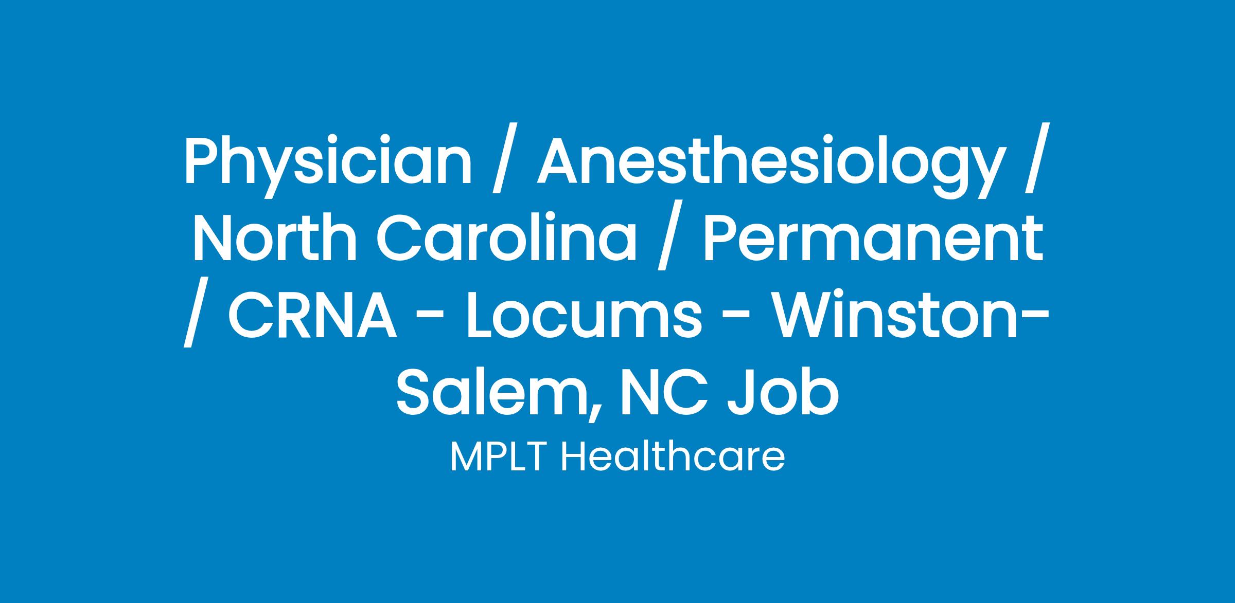 MPLT Healthcare is looking for CRNA s who Understand the Urgency, Never Give Up, and Have the Courage to Excel in the forever changing medical industry! We have numerous opportunities for an experienced CRNA with highly competitive pay rates in Winston-Salem, NC .