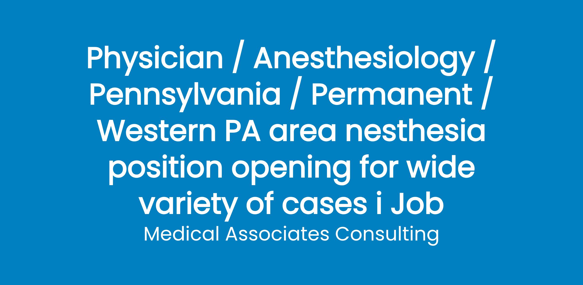 A group in Western PA has an anesthesia position opening for wide variety of cases including vascular, thoracic, cardiac, OB, peds, ortho, regional & outpatient surgery. Call is 1:10 with post call day off. An abundance of outdoor activities nearby- sports, fishing, hunting, golfing and skiing. Offering highly competitive salary, production bonus and full benefits include malpractice, generous vacation and retirement plan!
