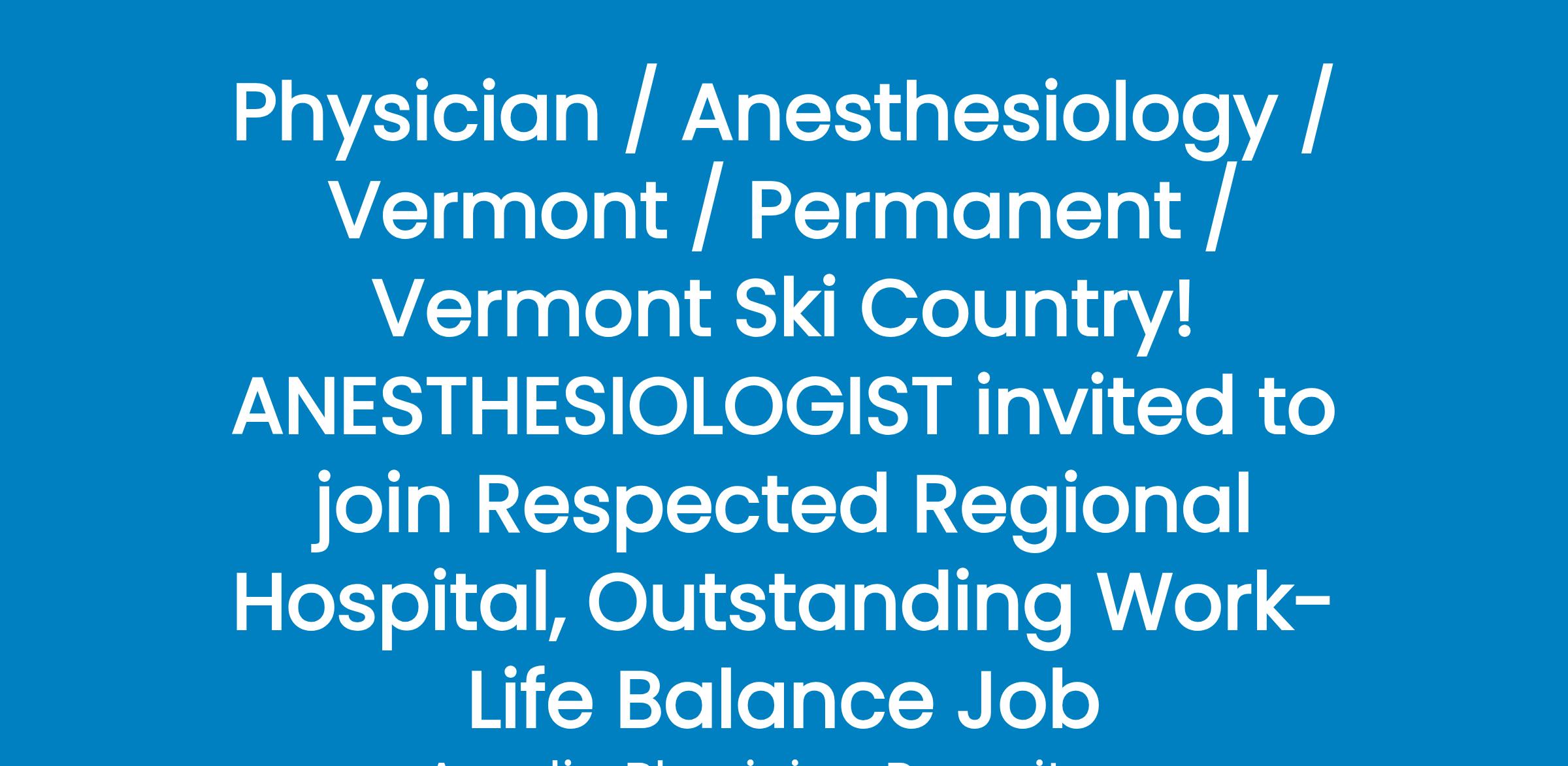 Rutland, Vermont: A respected 140-bed nonprofit hospital in the scenic Green Mountains seeks a talented Anesthesiologist to join a collegial team of five physicians plus CAAs and CRNAs. This is a hospital-employed position with the exclusive provider group for all anesthesia services at the medical center. The department serves an 85,000-resident region and enjoys a professional culture defined by mutual support, excellent collaboration, and clinical autonomy.Work-life balance is central to this position. Weekend call (Friday-Sunday) is covered by a dedicated team. Weekday call (Monday-Thursday) is shared equally among the physicians, with an average of 34 call days per month plus the post-call day off. This will enable you to fully enjoy Vermonts four-season outdoor lifestyle.Become part of a well-run, patient-focused practice that prioritizes quality of care. The hospital is a Level III-equivalent Trauma Center, with tertiary care support from surrounding medical centers (Dartmouth-Hitchcock, University of Vermont, Albany), which are accessible by ground or helicopter transport.Compensation & Benefits:Total annual compensation of $550,000Generous base salary plus signing/retention bonuses10 WEEKS of paid vacation timeAnnual budget for CME, licensing, and membershipsHealth, dental, vision, life, and disability insurancePaid liability insurance Choice of retirement plans with employer contributionsRelocation assistanceStudent loan assistance availableVermont is a highly desirable destination. Make your home in a safe, family-friendly community at the base of the Green Mountains. Just 20 minutes from Killington the largest ski resort in the East the area offers exceptional recreational opportunities year-round, from skiing and snowboarding to hiking, biking, golf, and kayaking. Enjoy vibrant local culture, with farmers markets, live music, theater, art galleries, and events supported by nearby colleges. You will find affordable real estate, welcoming neighborhoods, and top-ranked schools. Whether you prefer mountain views, waterfront living, or walkable downtown convenience, greater Rutland offers housing options to suit your lifestyle.Vermont proudly ranks as: State for Quality of Life Healthiest State in the USA Safest State in the USA Most Peaceful StateA Top 5 Best State for Climate Change PreparednessRutland is 90 minutes south of Burlington (with an international airport) and 1:45 from Albany. You will also be in reach of Boston, the Maine coast, and Montreal. Contact us today to learn more about this exceptional opportunity in beautiful, welcoming Vermont.Position Highlights:Employed position with respected 140-bed nonprofit medical centerJoin 5 Anesthesiologists plus CAAs and CRNAs in a collegial teamNo weekend callConvenient weekday call (3-4 times/month) with post-call day offPatient-focused practice provides clinical autonomyTotal annual compensation: $550,00010 WEEKS of paid vacation timeHealth, dental, vision, life, and disability coverageRetirement plan with employer contributionsAdditional paid leave plus a budget for CME, licensing & duesStudent loan assistance and relocation support available