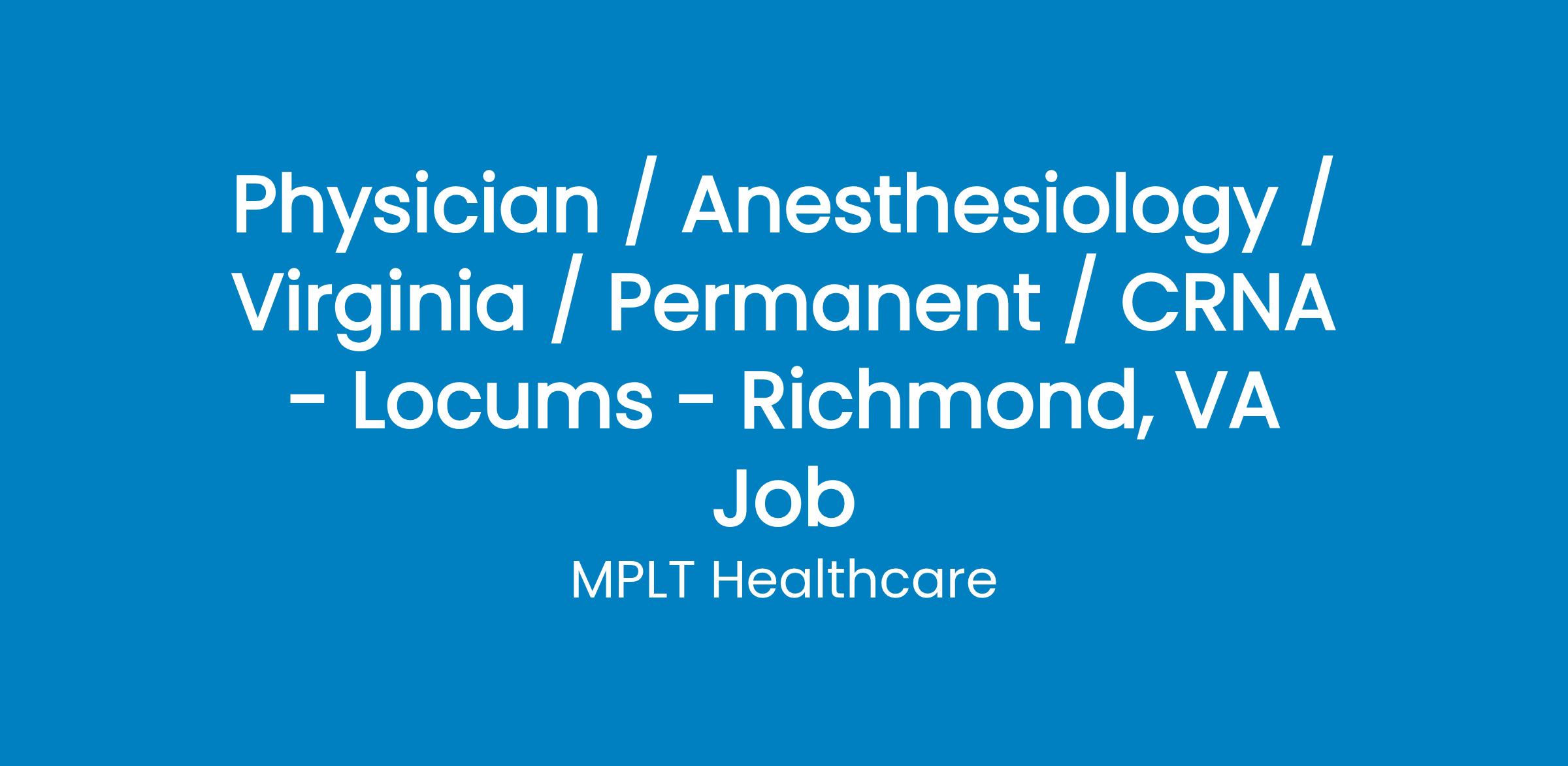 MPLT Healthcare is looking for a CRNA who Understand the Urgency, Never Give Up, and Have the Courage to Excel in the forever changing medical industry! We have numerous opportunities for an experienced CRNA with highly competitive pay rates in Richmond, VA .