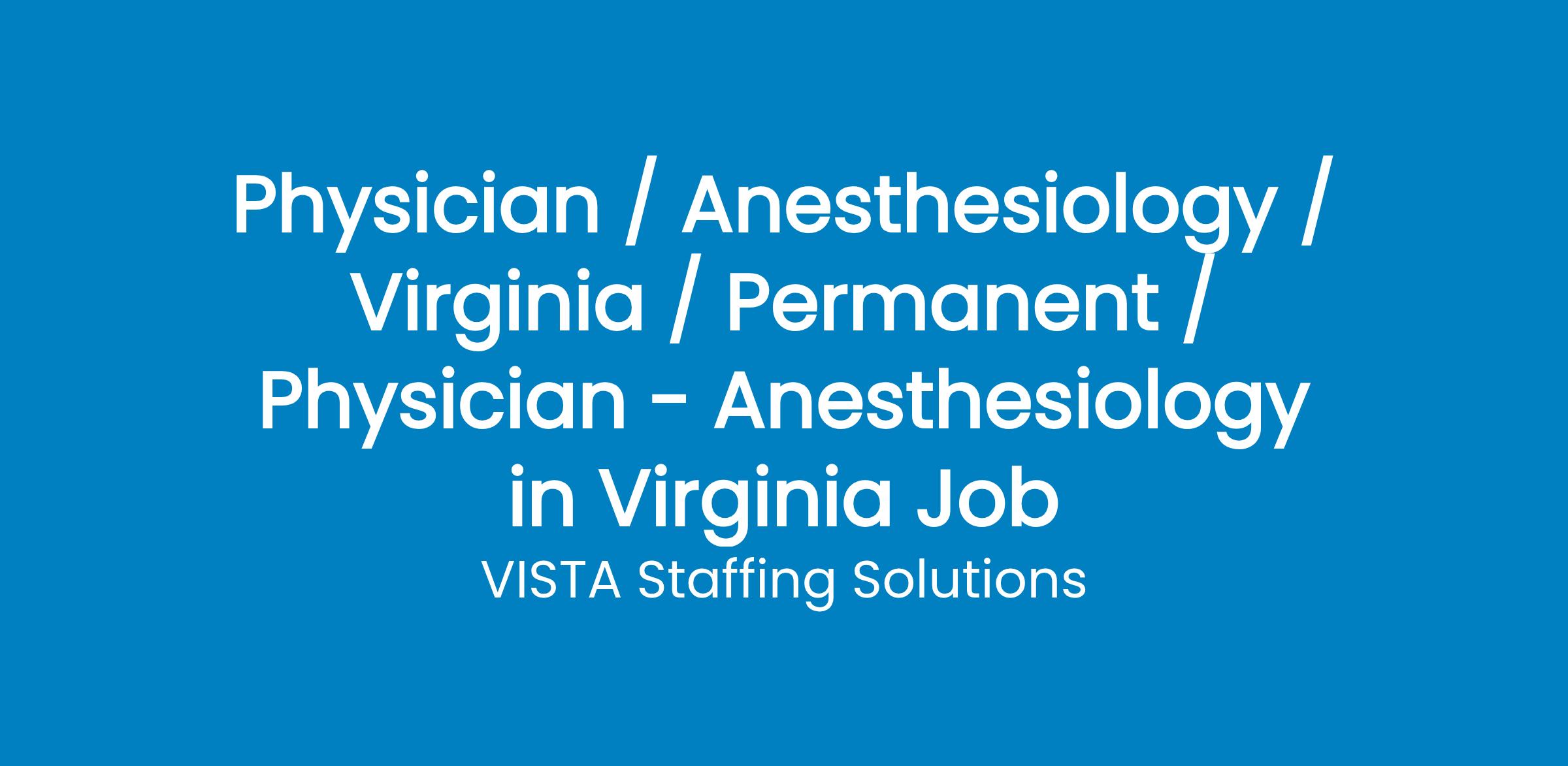 Are you an Anesthesiology physician looking for your next exciting locum tenens opportunity? VISTA has a fantastic position available with one of our healthcare partners in Central Virginia!