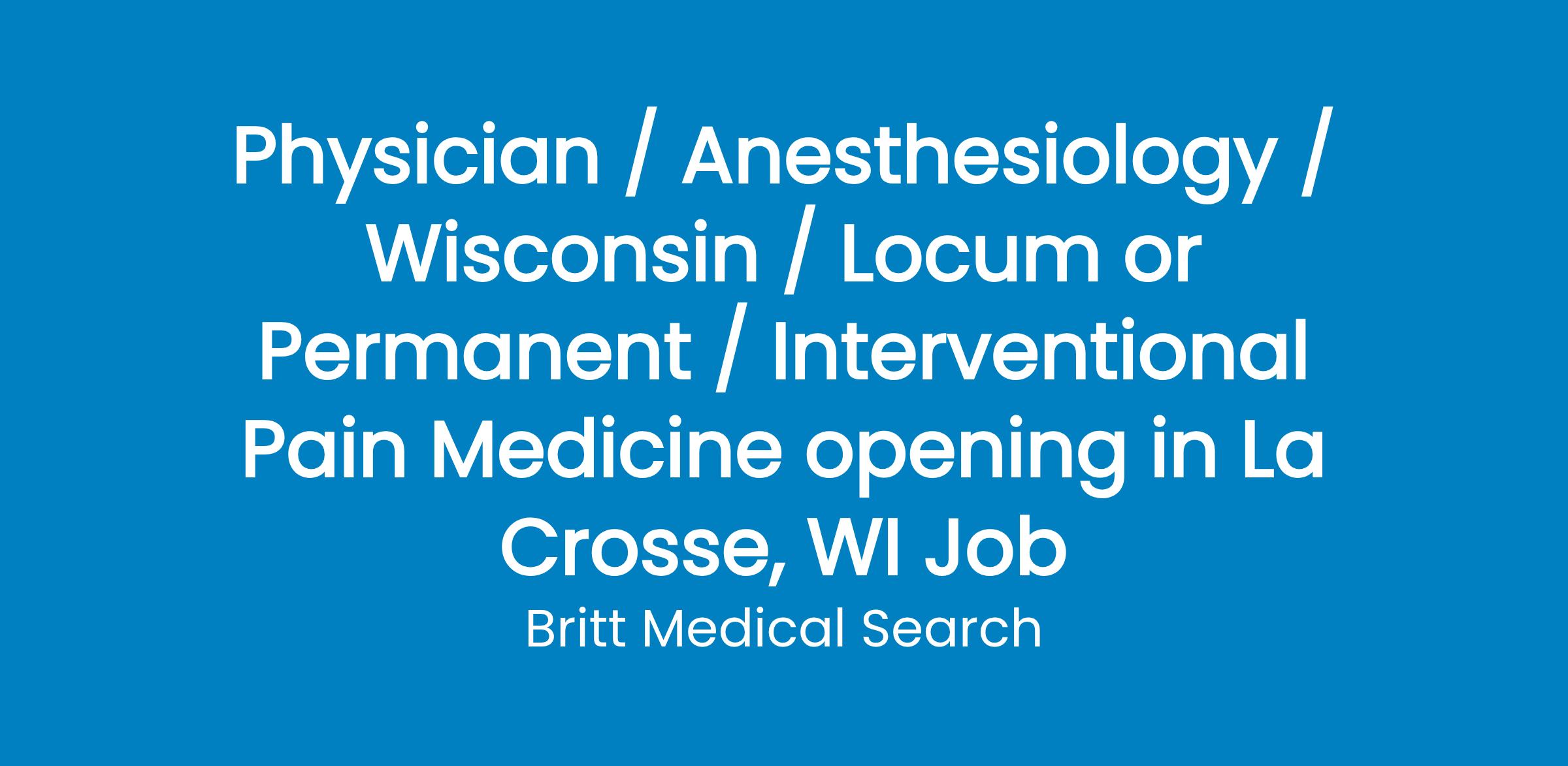 Seeking an Interventional Pain Medicine physician in La Crosse, Wisconsin.