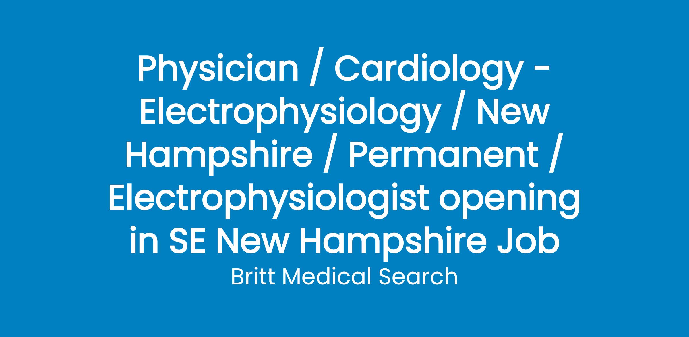 Seeking a full-time BC/BE Electrophysiologist to join a collaborative and patient-focused team in southeastern New Hampshire.