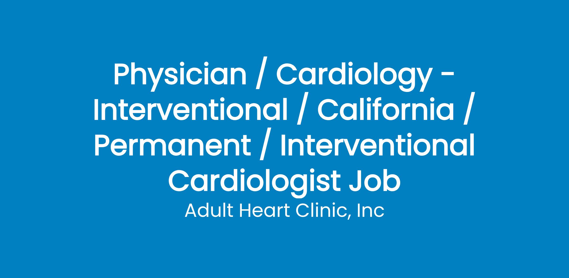 Hiring Interventional Board Certified or Eligible Cardiologist to work Full Time, office M-F and in Hospital M-Sun, rotation tbd. On call schedule rotation tbd. Patient base is Adults only. One office location and three plus hospitals. Please apply for further information.