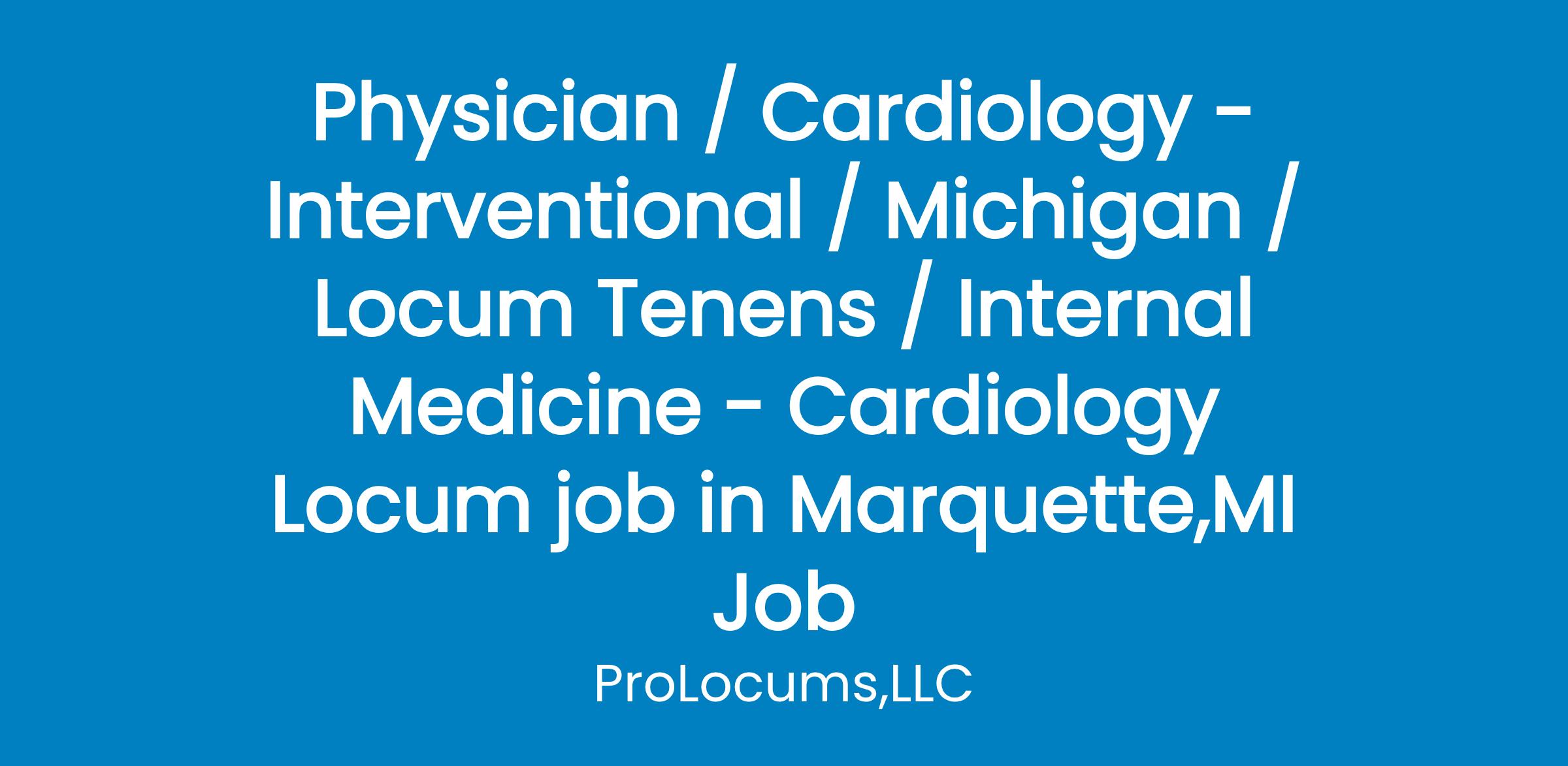 Specialty:Internal Medicine - CardiologyStart date: June End date: OngoingCoverage type: Scheduled Clinic Hours + CallSchedule: cSPECIFIC Interventional Cardiology needs: June 27 through to July 8th pm and August. 15 to August 22 am MUST have clean MI license. Strong General/Non-Invasive Cardiology need could be up to full-time for the right physician. Patients per shift: Variable