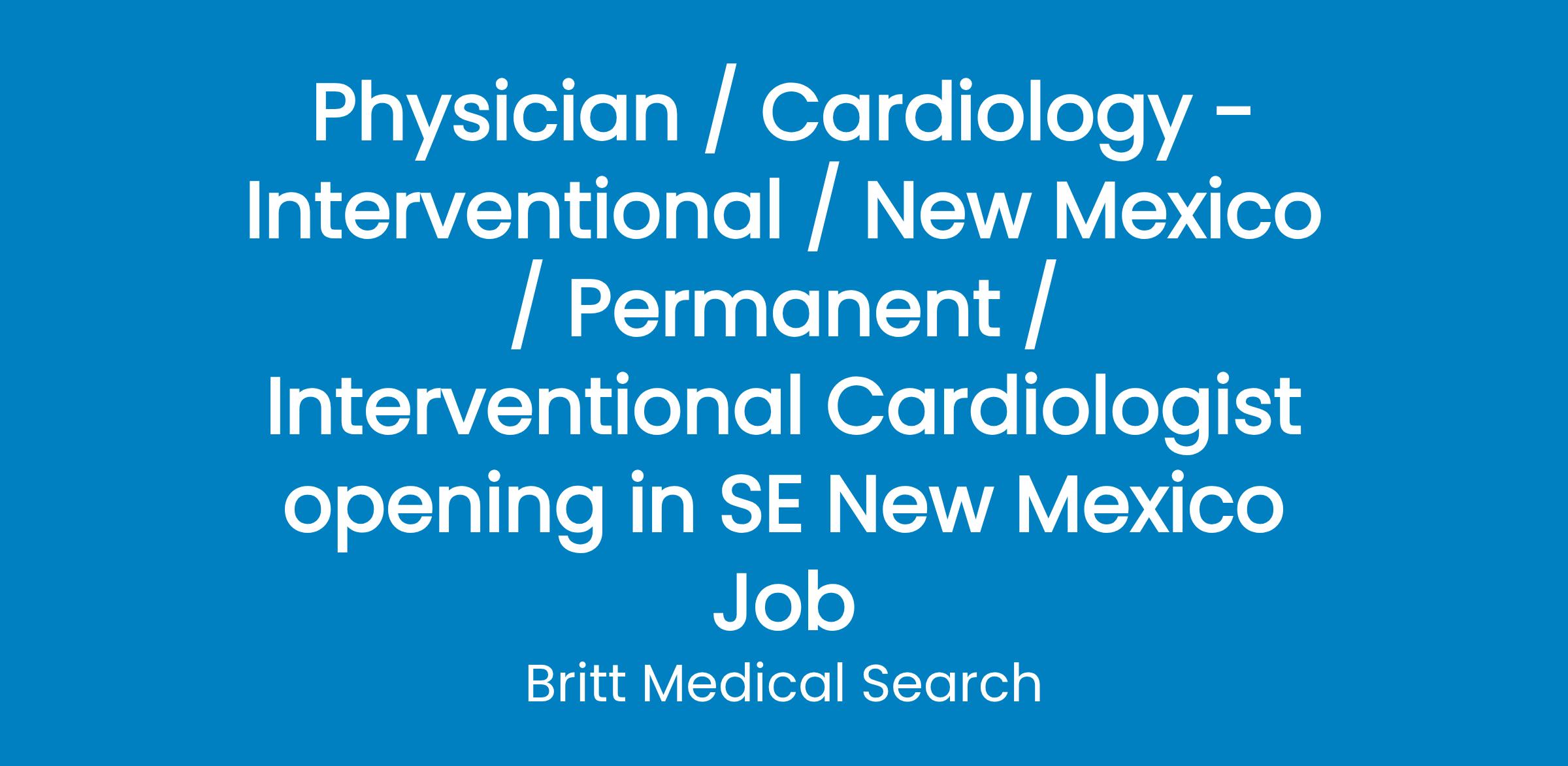 Medical Center in SE NM is seeking a BE/BC Interventional Cardiologist to join their team.