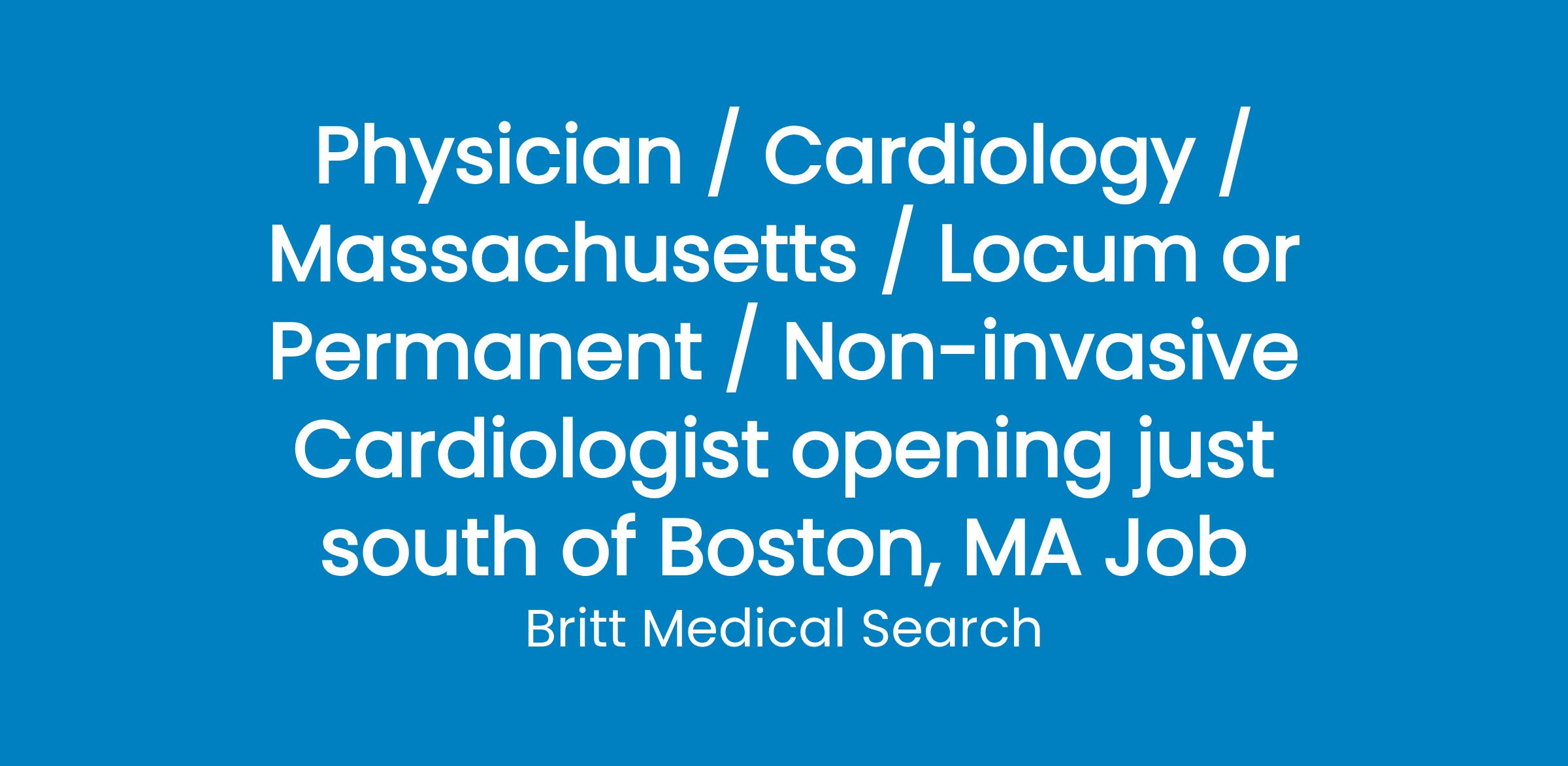 Seeking BE/BC Non-invasive Cardiologist with an interest in Heart Failure to join team just 25 miles south of Boston, MA.