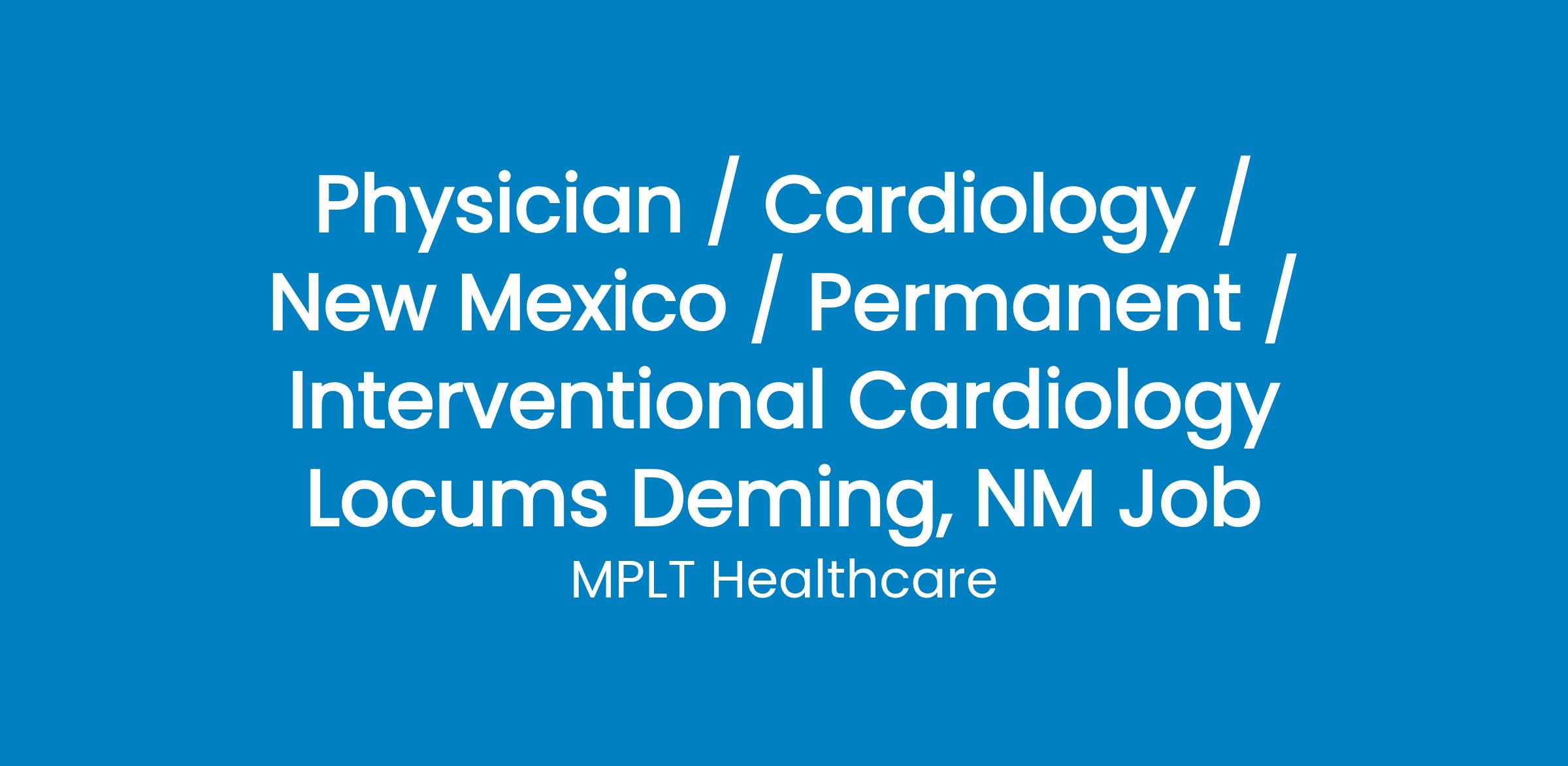 MPLT Healthcare is looking for physicians who Understand the Urgency, Never Give Up, and Have the Courage to Excel in the forever changing medical industry! We have numerous opportunities for an experienced Interventional Cardiologist with highly competitive pay rates in Deming, NM.