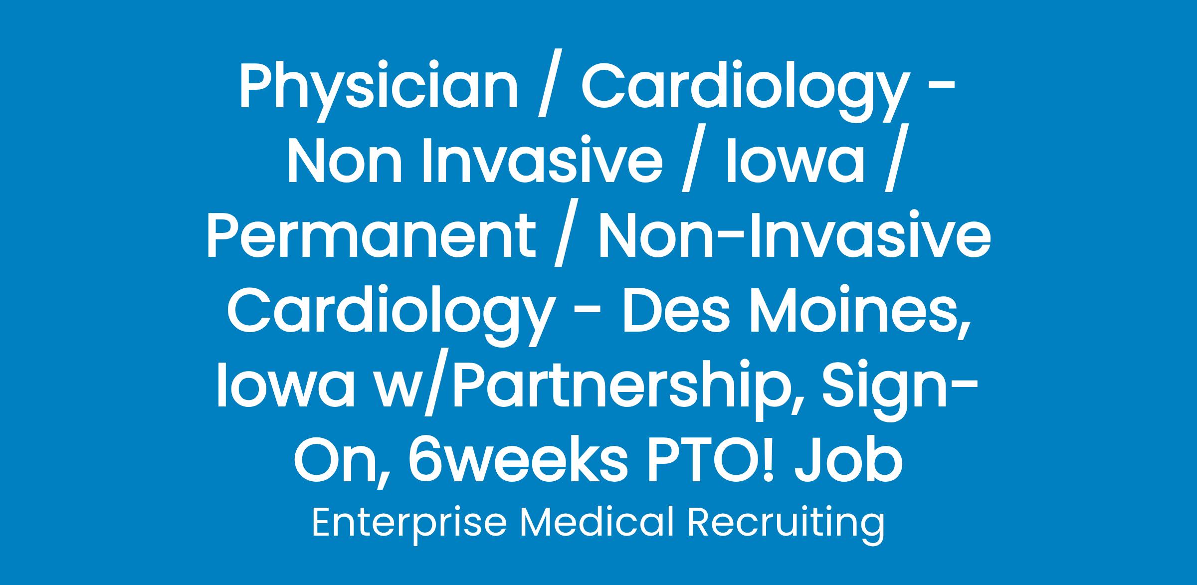 One of thelargest physician-owned/governed multi-specialty groups in the Midwestis adding aNon-Invasive Cardiologist to its Heart and Vascular team. Enjoy a collegial physician community, an excellent payor mix, and an in-house referral base with over 270 providers.