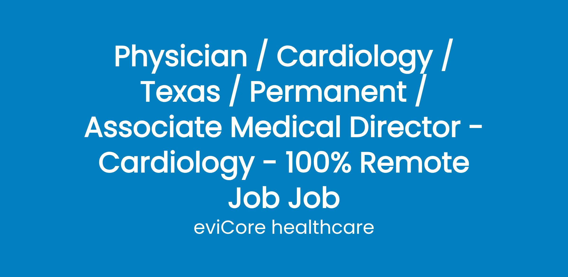 Physician / Cardiology / Texas / Permanent / Associate Medical Director - Cardiology - 100% Remote Job Job