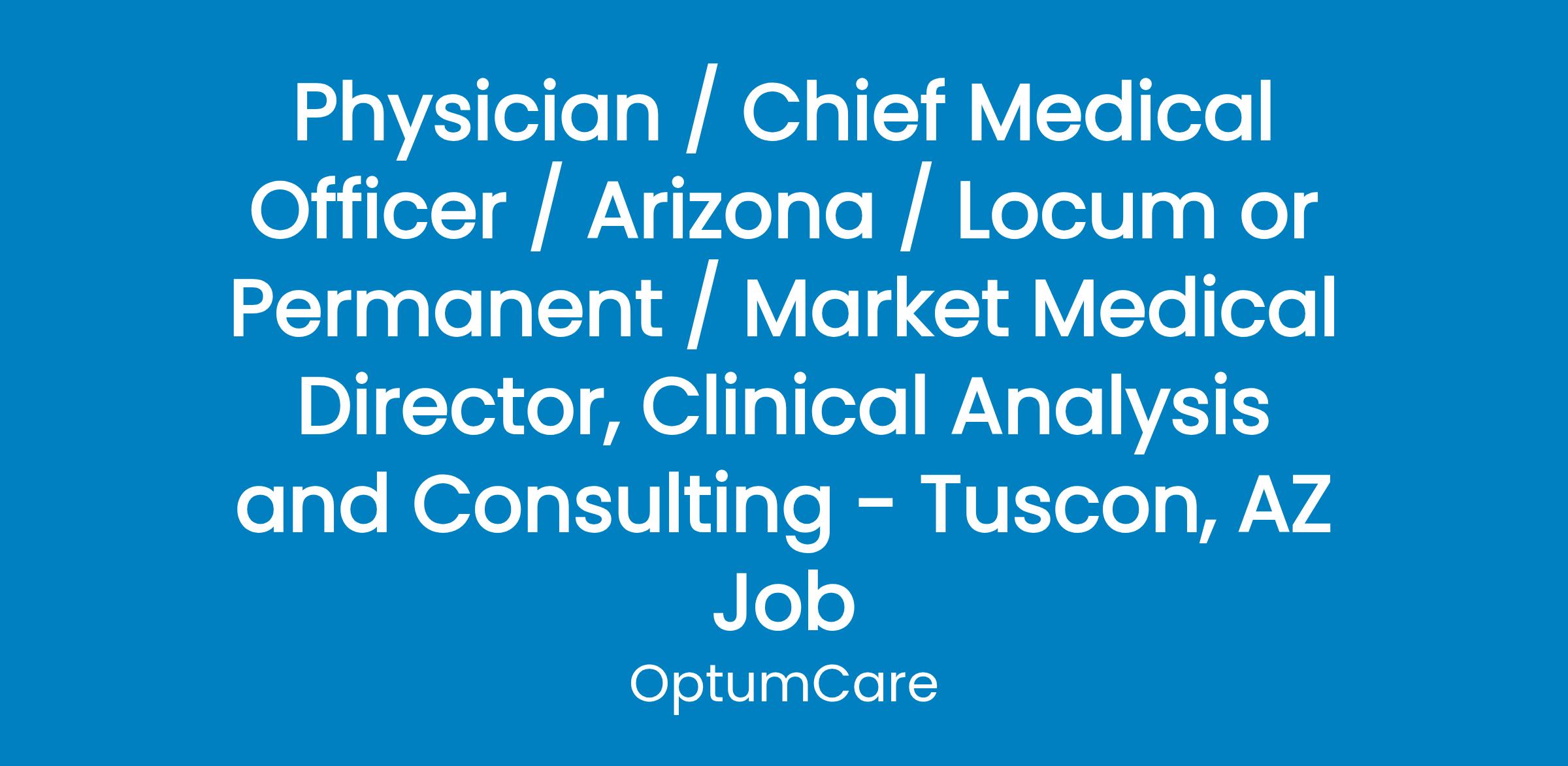 OptumCare Arizona is seeking a Medical Director to join our Clinical Analysis and Consulting Team in Tucson, AZ You will have the opportunity to drive measureable and meaningful outcomes in the Tucson Market with other members of the team. You will be responsible for improving the quality and efficiency of medical care in the market, and leading the provider network (both employed and contracted).