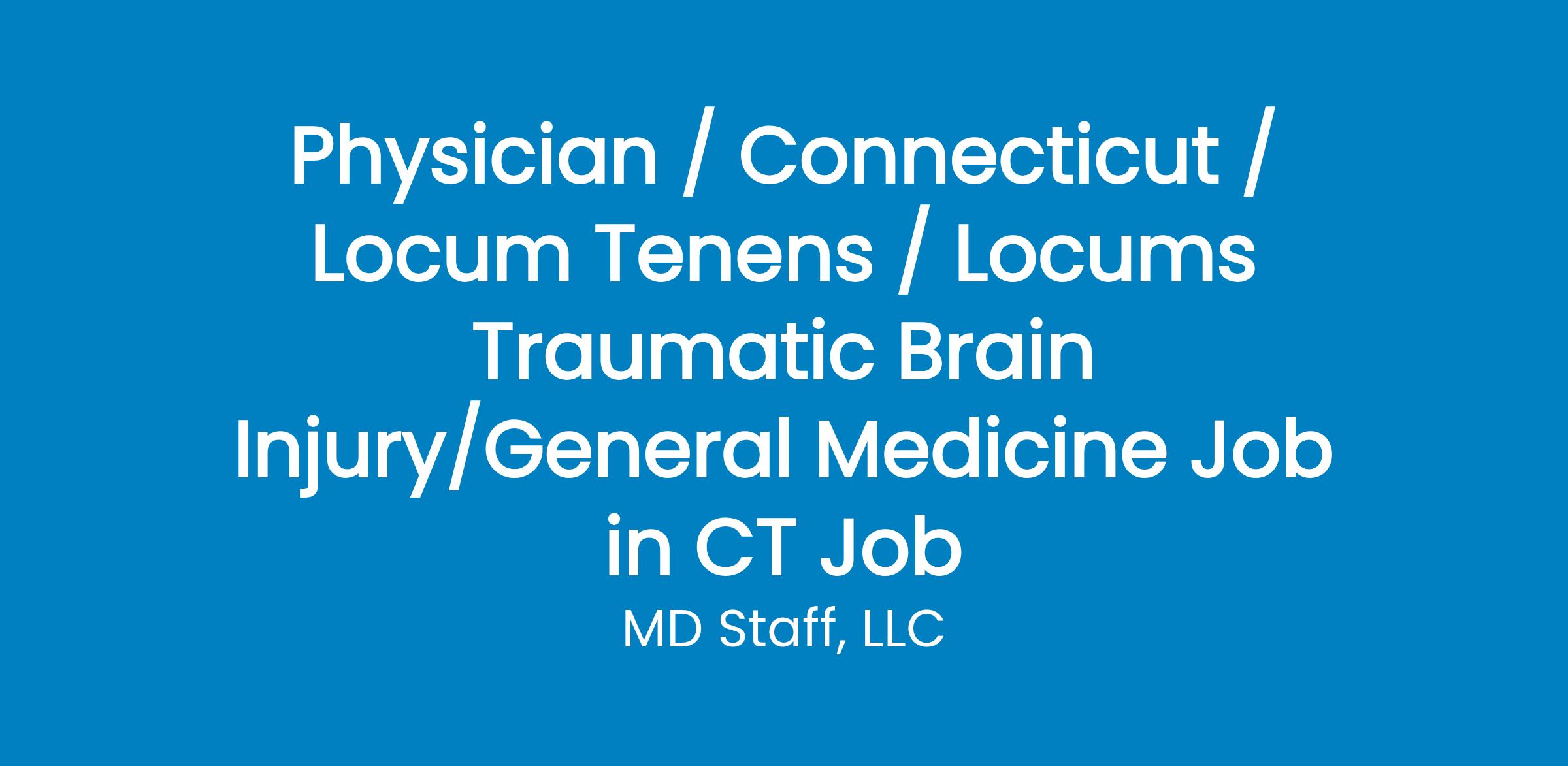 Lucrative Locum Tenens Opportunity for Physicians in Connecticut! Are you a dedicated physician with experience in Traumatic Brain Injury (TBI) and General Medicine looking for a rewarding locum tenens opportunity? A Maximus company, is a government contractor seeking skilled providers to perform a combination of General Medicine and Traumatic Brain Injury exams across the country, including Connecticut. Position Details: Profession: Physician Specialty: Traumatic Brain Injury/General Medicine Unit: Connecticut Traumatic Brain Injury/General Medicine Default Rate Type: Daily # of Providers Needed: 1 Shift Type: Days Shift Description: PRN - as needed basis. Shifts TBD. Half day is 4 hours or less. Full day is 4-8 hours. Weekend Requirements: Able to work weekends, if desired/needed On Call Requirements: N/A MANDATED Job Requirements: To ensure a seamless onboarding process, all providers must meet the following requirements: Reside or have an office within 50 miles of the site, unless otherwise stated Proficient in METs testing, evaluating, and diagnosing respiratory, cardiovascular, and neurological conditions Willingness to perform both General Medicine and Traumatic Brain Injury exams Own a laptop (no Mac/Apple products) Willingness to wear a mask during all visits Not actively employed at the VA, in active military duty, or in the reserves Board Certified or Truly Board Eligible within 0-3 years of residency Active and unrestricted full license If DMA Certified, provide certification details Provide current home address on CV ECFMG certificate required if attended school in a different country Certification Requirements: Board Certified License Requirements: Active and unrestricted full license Facility Description: A Maximus company, is a government contractor dedicated to serving our nation's Veterans. Providers play a vital role in performing a combination of General Medicine and Traumatic Brain Injury exams. Job Description: Actively seeking physicians for the following location: Near Terryville, CT Details: Need is on a PRN basis, ongoing Must be Board Certified in Neurology, Neurosurgery, PM&R Exams are primarily interview-based with some physical assessment: range of motion testing, muscle strength testing, evaluating traumatic brain injury. Exams will be a mix of General Medicine and Traumatic Brain Injury. No prescribing, no treatment DMA certification available (can get CME credits) - will need to obtain once privileged if not already certified Use of Goniometer required Familiar with Musculoskeletal, Diabetes, and Cardio required Proficient in METs testing, evaluating and diagnosing respiratory, cardiovascular, and neurological conditions. Must own a personal laptop (NO Apple Laptops/MACs) Training provided for all Reporting/Disability Benefits Questionnaires (DBQs) Reporting/DBQs must be submitted within 48 hours upon exam completion - no narrative report. End product is completion of standardized form(s). Evaluations to be completed in provider portal, and records are reviewed If you are interested in hearing more about this opportunity, please call or text MD Staff at . You can also reach us through email at . Please reference Job ID . Join us in making a meaningful impact on Veterans' healthcare!