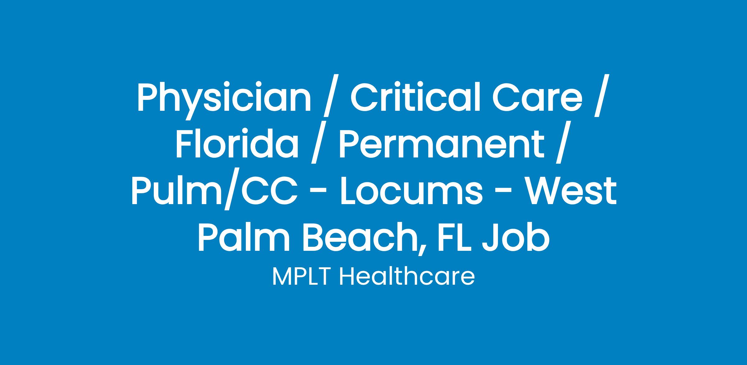 Have the Courage to Excel in the forever changing medical industry! We have numerous opportunities for an experienced Pulmonary/Critical Care Physican with highly competitive pay rates in West Palm Beach, FL.