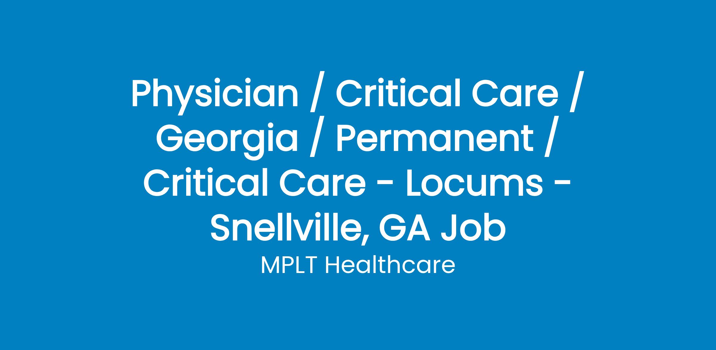 MPLT Healthcare is looking for physicians who Understand the Urgency, Never Give Up, and Have the Courage to Excel in the forever changing medical industry! We have numerous opportunities for an experienced Critical Care Physician w ith highly competitive pay rates in Snellville, GA.