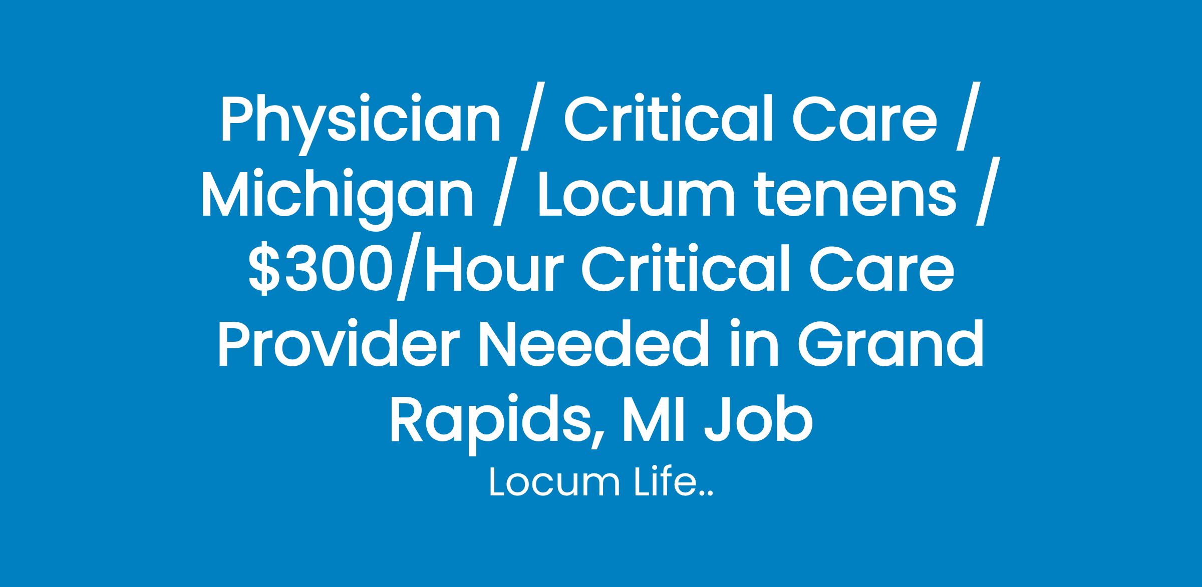Physician / Critical Care / Michigan / Locum tenens / $300/Hour Critical Care Provider Needed in Grand Rapids, MI Job