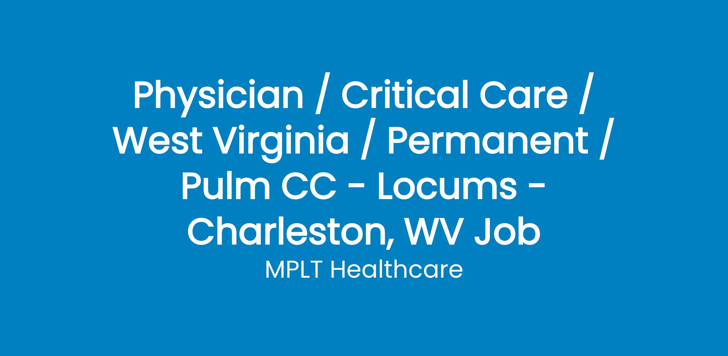 MPLT Healthcare is looking for Physicians who Understand the Urgency, Never Give Up, and Have the Courage to Excel in the forever changing medical industry! We have numerous opportunities for an experienced Pulmonary - Critical Care physician with highly competitive pay rates in Charleston, WV.