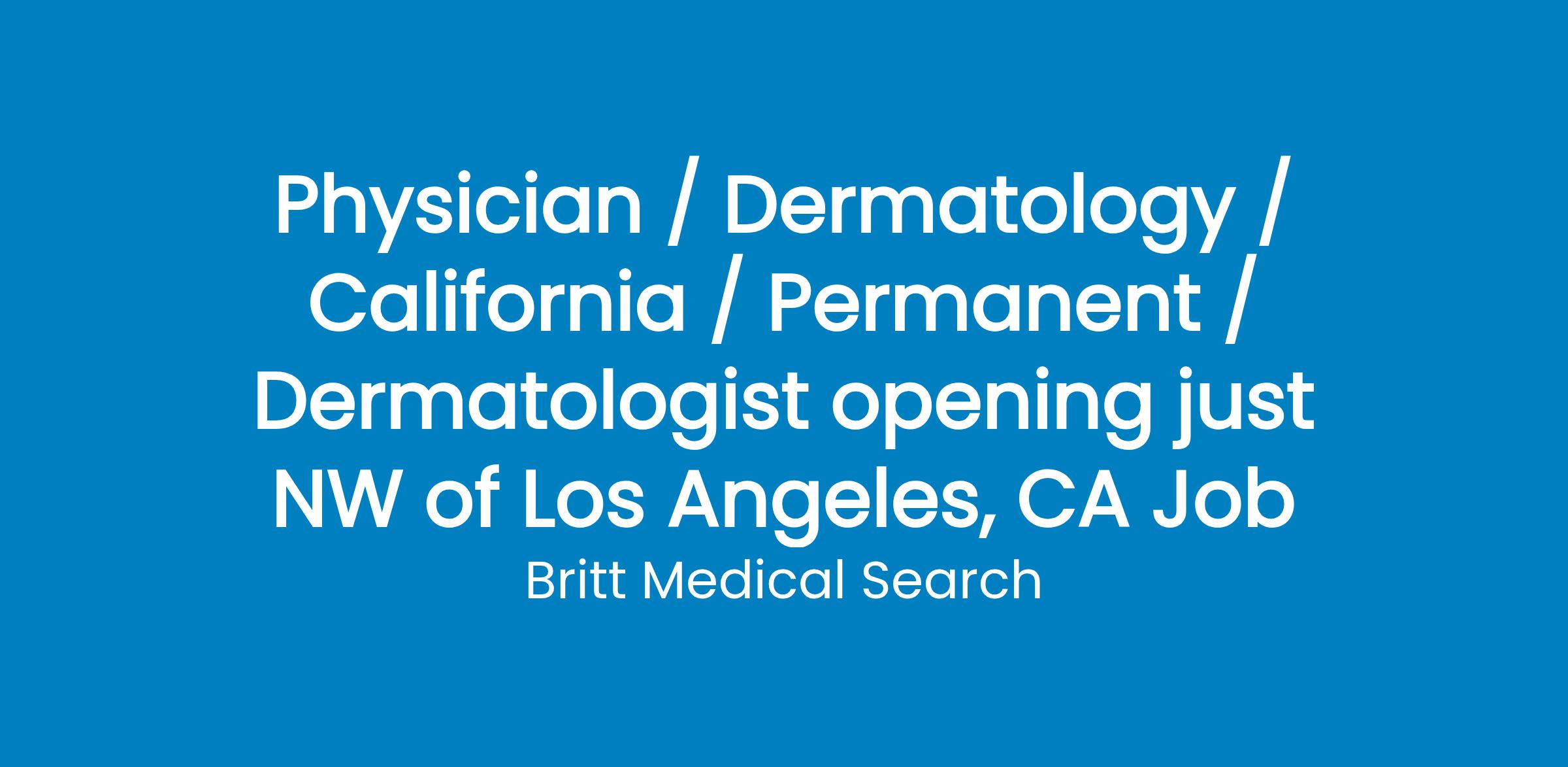 Seeking a full-time BC/BE Dermatologist to join team in northern Los Angeles County.