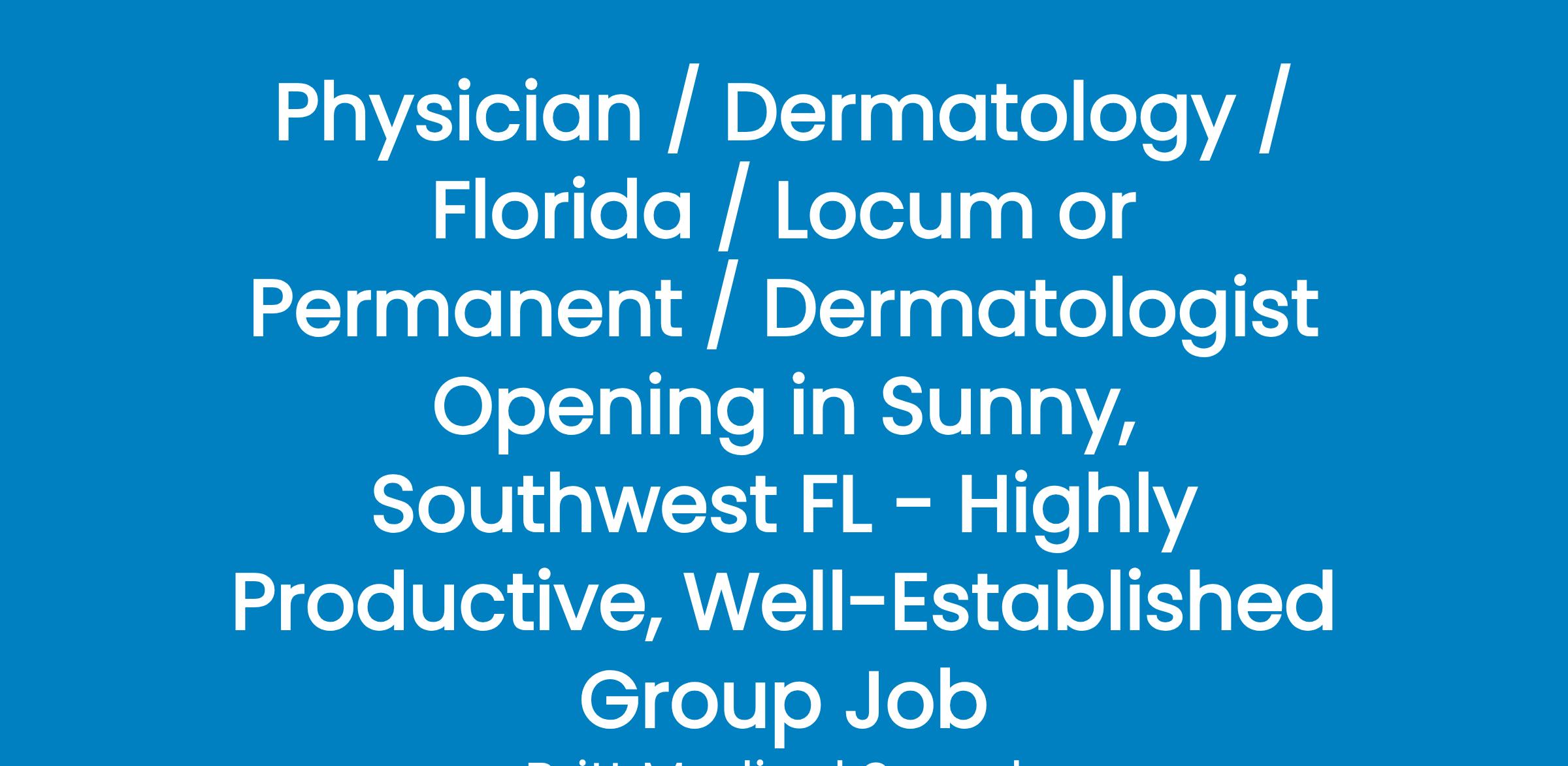 Our thriving, patient-centered, physician-led organization is seeking a BC/BE Dermatologist to join our highly productive, well-established group in Ft. Myers, Florida.