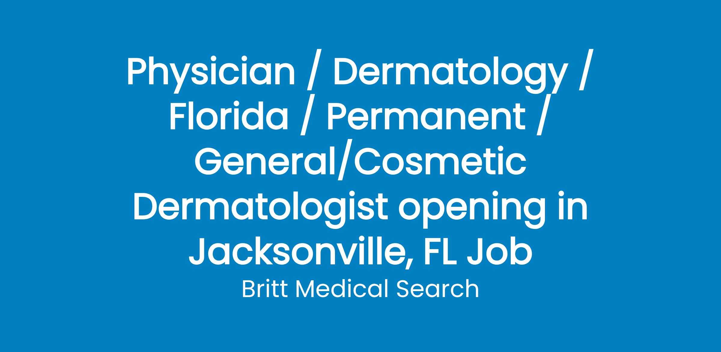 Seeking BE/BC Dermatologist to join full service medical and cosmetic dermatology practice in Jacksonville, FL.