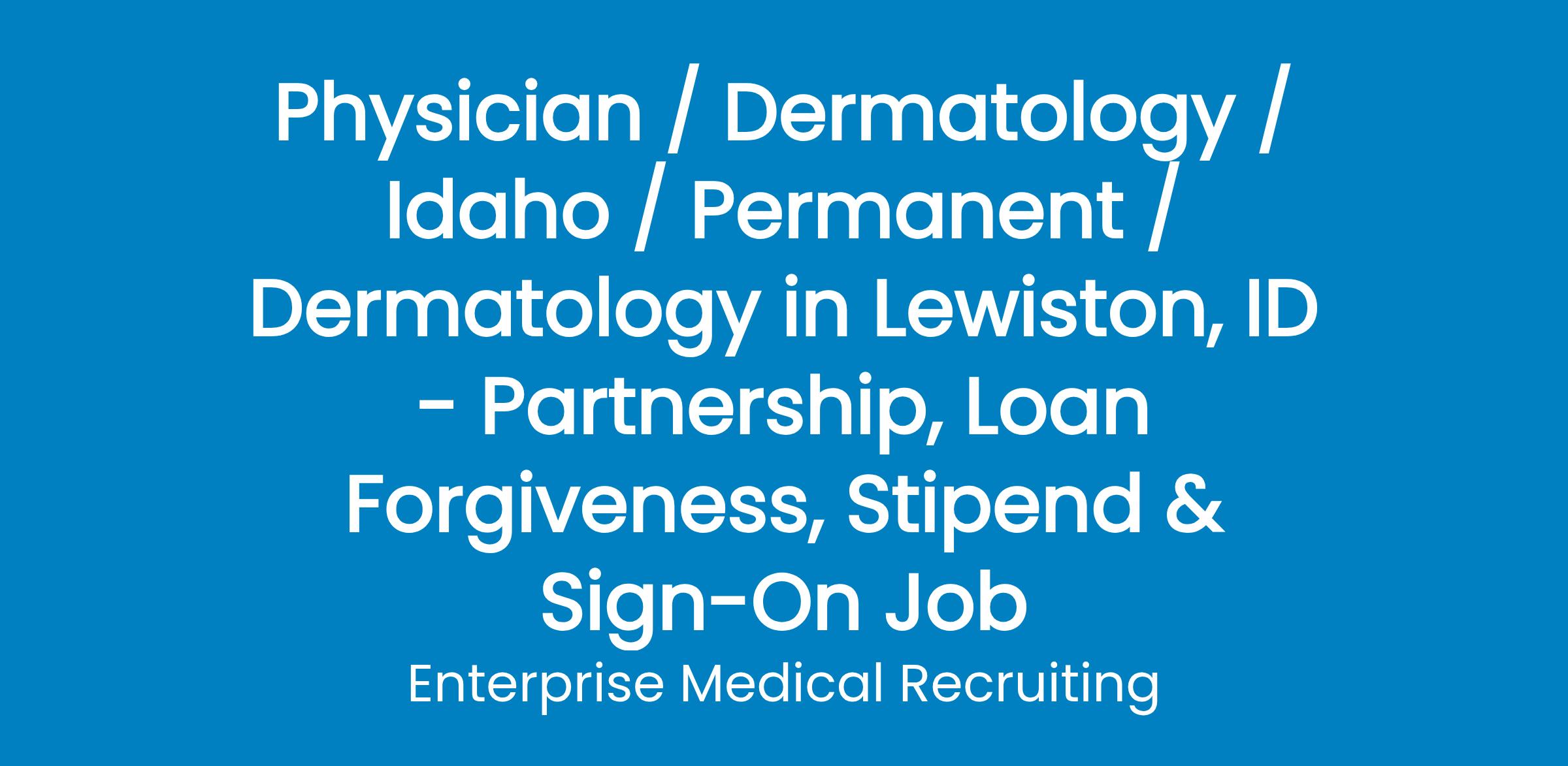 We are currently scheduling interviews with a physician-owned practice in the Lewiston, Idaho, area that is adding a Dermatologist to its team.