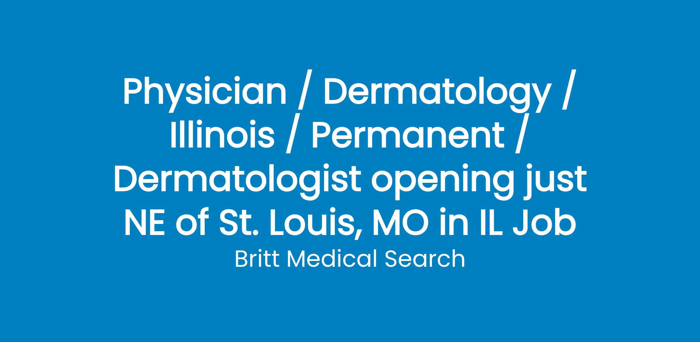 Physician / Dermatology / Illinois / Permanent / Dermatologist opening just NE of St. Louis, MO in IL Job